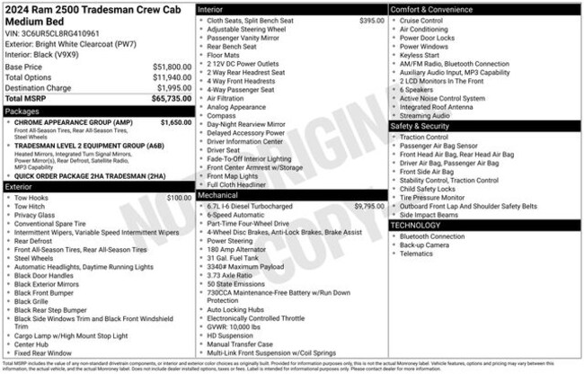 Engine: 6.7L I6 Cummins Turbo Diesel