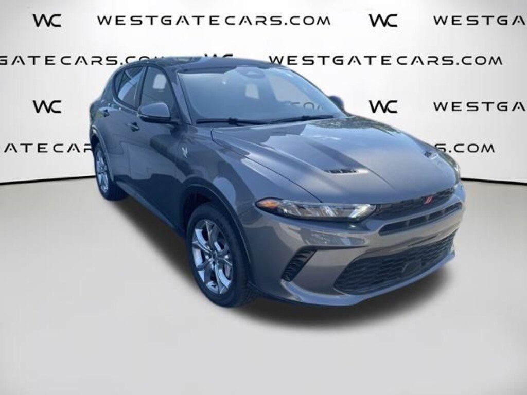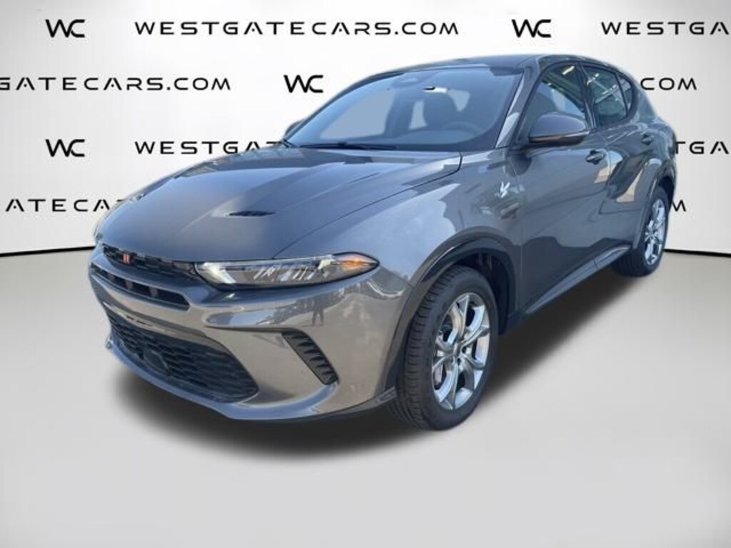 Gray Cray 2024 Dodge Hornet R/T AWD 6-Speed Automatic 1.3L I4 1.3L I4, 10.25" Touchscreen Display, 4-Wheel Disc Brakes, 6 Speakers, ABS brakes, Air Conditioning, Alloy wheels, AM/FM radio: SiriusXM, Anti-whiplash front head restraints, Apple CarPlay, Apple CarPlay/Android Auto, Auto High-beam Headlights, Auto-dimming Rear-View mirror, Brake assist, Bumpers: body-color, Cloth/Leatherette Seats, Compass, Connectivity - US/Canada, Delay-off headlights, Disassociated Touchscreen Display, Driver door bin, Driver Seat Memory, Driver vanity mirror, Dual front impact airbags, Dual front side impact airbags, Electronic Stability Control, Emergency communication system: Dodge Connect, Four wheel independent suspension, Front Bucket Seats, Front Center Armrest w/Storage, Front dual zone A/C, Front reading lights, Fully automatic headlights, Garage door transmitter, Google Android Auto, GPS Antenna Input, Heated door mirrors, Heated front seats, Heated steering wheel, Illuminated entry, Knee airbag, Lane Departure Warning System, Leather Shift Knob, Leather steering wheel, Low tire pressure warning, Manufacturer's Statement of Origin, Memory seat, Normal Duty Suspension, Occupant sensing airbag, Outside temperature display, Overhead airbag, Overhead console, Panic alarm, ParkView Rear Back-Up Camera, Passenger door bin, Passenger vanity mirror, Power 4-Way Driver Lumbar Adjust, Power Adjust 8-Way Driver Seat, Power door mirrors, Power driver seat, Power steering, Power windows, Quick Order Package 28B (DISC), Radio: Uconnect 5 w/10.25" Display, Rain sensing wipers, Rear anti-roll bar, Rear seat center armrest, Rear window defroster, Rear window wiper, Remote keyless entry, Security system, Speed control, Speed-sensing steering, Split folding rear seat, Spoiler, Tachometer, TBD Axle Ratio, Telescoping steering wheel, Tilt steering wheel, Traction control, Trip computer, Turn signal indicator mirrors, Variably intermittent wipers, Wheels: 18" x 7.5" Graphite Aluminum, 1.3L I4.
