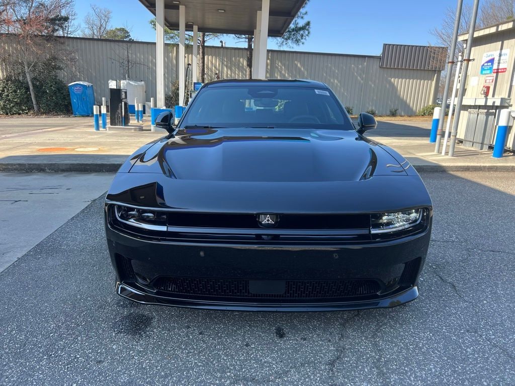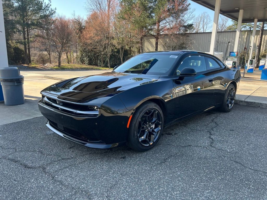Diamond Black Crystal Pearlcoat 2025 Dodge Charger R/T AWD 1-Speed Automatic Electric Motor AWD, Black Artificial Leather, 10 Speakers, 18" x 8.5" Aluminum Wheels, 2-Way Manual Adjust Head Restraints, 2-Way Power Driver Lumbar Adjust, 4-Wheel Disc Brakes, 8-Way Power Driver Seat Adjust, ABS brakes, Air Conditioning, Alloy wheels, AM/FM radio: SiriusXM w/360L, Apple CarPlay/Android Auto, Auto-dimming Rear-View mirror, Automatic temperature control, Black Seats, Blacktop Package, Brake assist, Bumpers: body-color, Compass, Dark Exterior Badging, Delay-off headlights, Driver door bin, Driver vanity mirror, Dual front impact airbags, Dual front side impact airbags, Electronic Stability Control, Emergency communication system: Dodge Connect, Four wheel independent suspension, Front anti-roll bar, Front Bucket Seats, Front Center Armrest, Front dual zone A/C, Front reading lights, Fully automatic headlights, Garage door transmitter, Heated door mirrors, Heated Exterior Mirrors, Heated Front Seats, Heated front seats, Heated steering wheel, Illuminated entry, Knee airbag, Leather Shift Knob, Leatherette/Cloth Performance Seats, Low Back Bucket Seats, Low tire pressure warning, Navigation System, Nexen Brand Tires, Occupant sensing airbag, Outside temperature display, Overhead airbag, Overhead console, Panic alarm, ParkView Rear Back-Up Camera, Passenger door bin, Passenger vanity mirror, Power Adjust Mirrors, Power door mirrors, Power driver seat, Power steering, Power windows, Quick Order Package 25M R/T, Radio data system, Radio: Uconnect 5 Nav w/12.3" Display, Rear anti-roll bar, Rear reading lights, Rear seat center armrest, Rear window defroster, Remote keyless entry, Security system, Speed control, Split folding rear seat, Sport steering wheel, Steering wheel mounted audio controls, Telescoping steering wheel, Tilt steering wheel, Traction control, Trip computer, Two Tone Paint Group, Variably intermittent wipers, Wheels: 20" x 9" Black Aluminum, AWD, Black Artificial Leather.