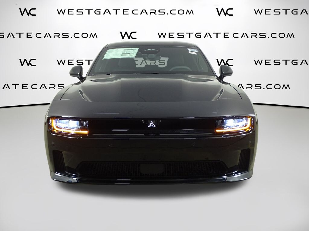 Diamond Black Crystal Pearlcoat 2025 Dodge Charger R/T AWD 1-Speed Automatic Electric Motor AWD, Black Artificial Leather, 10 Speakers, 18" x 8.5" Aluminum Wheels, 2-Way Manual Adjust Head Restraints, 2-Way Power Driver Lumbar Adjust, 4-Wheel Disc Brakes, 8-Way Power Driver Seat Adjust, ABS brakes, Air Conditioning, Alloy wheels, AM/FM radio: SiriusXM w/360L, Apple CarPlay/Android Auto, Auto-dimming Rear-View mirror, Automatic temperature control, Black Seats, Brake assist, Bumpers: body-color, Compass, Delay-off headlights, Driver door bin, Driver vanity mirror, Dual front impact airbags, Dual front side impact airbags, Electronic Stability Control, Emergency communication system: Dodge Connect, Four wheel independent suspension, Front anti-roll bar, Front Bucket Seats, Front Center Armrest, Front dual zone A/C, Front reading lights, Fully automatic headlights, Garage door transmitter, Heated door mirrors, Heated Exterior Mirrors, Heated Front Seats, Heated front seats, Heated steering wheel, Illuminated entry, Knee airbag, Leather Shift Knob, Leatherette/Cloth Performance Seats, Low Back Bucket Seats, Low tire pressure warning, Navigation System, Nexen Brand Tires, Occupant sensing airbag, Outside temperature display, Overhead airbag, Overhead console, Panic alarm, ParkView Rear Back-Up Camera, Passenger door bin, Passenger vanity mirror, Power Adjust Mirrors, Power door mirrors, Power driver seat, Power steering, Power windows, Quick Order Package 25M R/T, Radio data system, Radio: Uconnect 5 Nav w/12.3" Display, Rear anti-roll bar, Rear reading lights, Rear seat center armrest, Rear window defroster, Remote keyless entry, Security system, Speed control, Split folding rear seat, Sport steering wheel, Steering wheel mounted audio controls, Telescoping steering wheel, Tilt steering wheel, Traction control, Trip computer, Two Tone Paint Group, Variably intermittent wipers, AWD, Black Artificial Leather.
