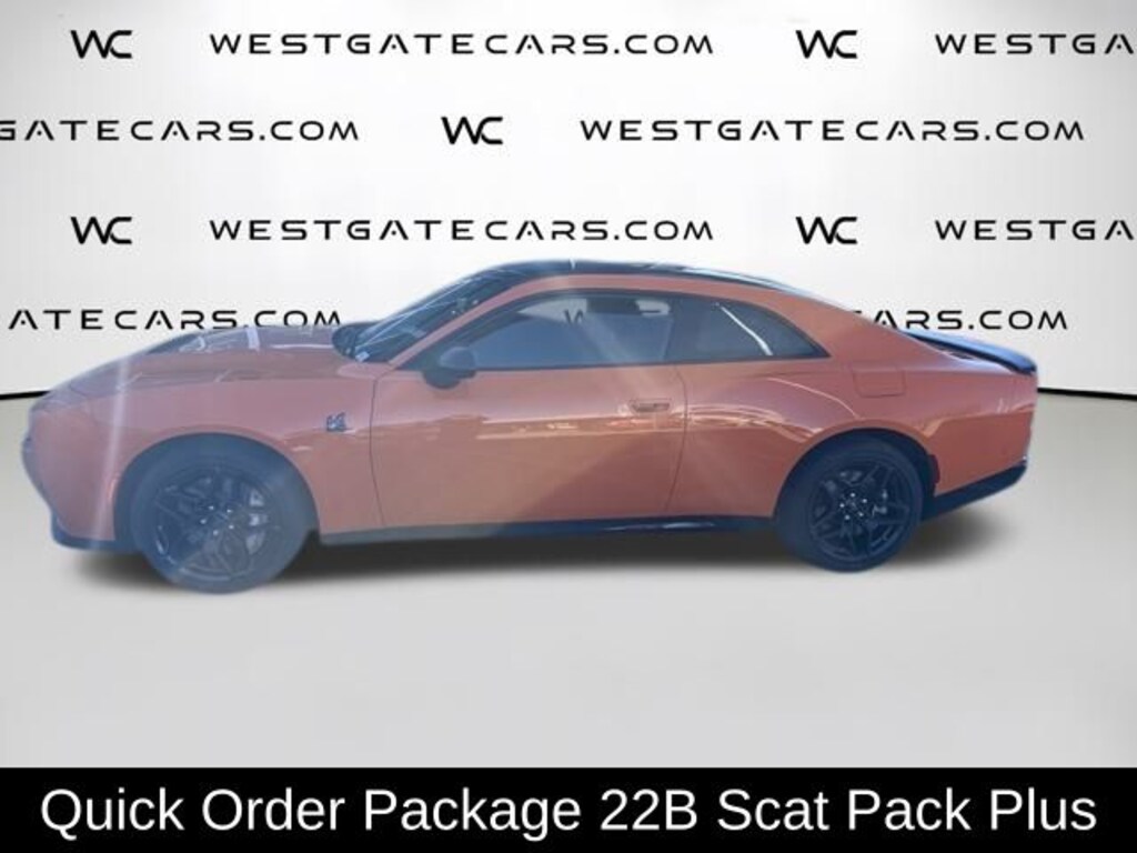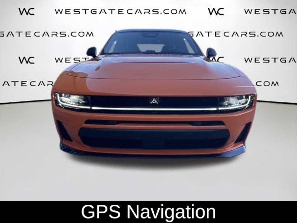 This striking 2026 Dodge Charger R/T Scat Pack is a true performance powerhouse, boasting a high-output 8-speed automatic AWD powertrain that delivers exhilarating acceleration and responsive handling. Finished in a bold and eye-catching Orange exterior, this Charger commands attention wherever it goes. The aggressive Scat Pack styling cues, including the distinctive front grille, muscular fenders, and dual-exhaust tips, give this vehicle an undeniable presence on the road.