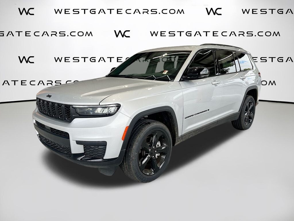 Silver Zynith 2024 Jeep Grand Cherokee L Altitude 4WD 8-Speed Automatic 3.6L V6 24V VVT 115V Auxiliary Power Outlet, 3.45 Rear Axle Ratio, 3rd Row Charge-Only USB Ports, 3rd row seats: split-bench, 4-Wheel Disc Brakes, 6 Speakers, ABS brakes, Air Conditioning, Alloy wheels, Altitude Appearance Package, Anti-whiplash front head restraints, Automatic temperature control, Black Headliner, Brake assist, Bumpers: body-color, Capri Leatherette/Suede Seats, Cloth Seats, Compass, Delay-off headlights, Delete Laredo Badge, Driver door bin, Driver vanity mirror, Dual front impact airbags, Dual front side impact airbags, Electronic Stability Control, Emergency communication system, Four wheel independent suspension, Front anti-roll bar, Front Bucket Seats, Front Center Armrest w/Storage, Front dual zone A/C, Front reading lights, Fully automatic headlights, Gloss Black Exterior Accents, Heated door mirrors, Heated Front Seats, Heated Steering Wheel, Illuminated entry, Knee airbag, Low tire pressure warning, Manual Fold Seatbacks, Normal Duty Suspension, Occupant sensing airbag, Outside temperature display, Overhead airbag, Overhead console, Panic alarm, ParkView Rear Back-Up Camera, Passenger door bin, Passenger vanity mirror, Power door mirrors, Power driver seat, Power Liftgate, Power steering, Power windows, Quick Order Package 23B Altitude, Radio data system, Radio: Uconnect 5 w/8.4" Display, Rain Sensitive Windshield Wipers, Rear air conditioning, Rear anti-roll bar, Rear reading lights, Rear window defroster, Rear window wiper, Reclining 3rd row seat, Remote keyless entry, Remote Start System, Security system, Selectable Tire Fill Alert, Speed control, Speed-Sensitive Wipers, Split folding rear seat, Spoiler, Steering wheel mounted audio controls, Tachometer, Telescoping steering wheel, Tilt steering wheel, Traction control, Trip computer, Variably intermittent wipers, Voltmeter, Wheels: 18" x 8.0" Fully Painted Aluminum, Wheels: 18" x 8.0" Fully Painted Aluminum 1, Wheels: 20" x 8.5" Gloss Black Painted Aluminum, Wireless Charging Pad.