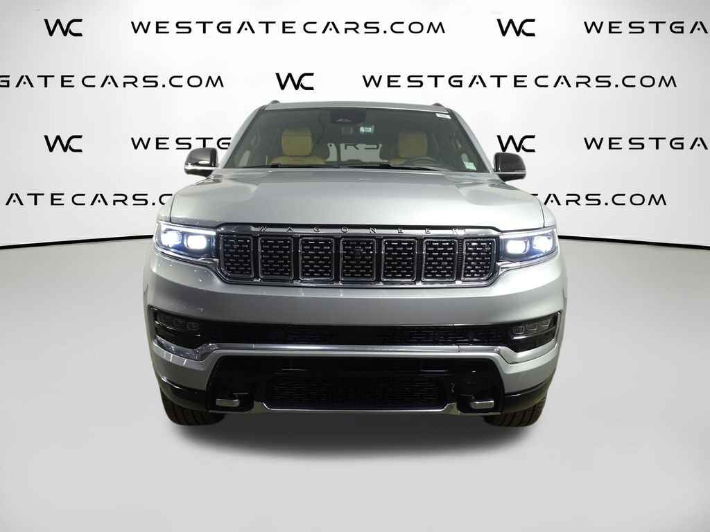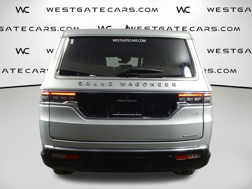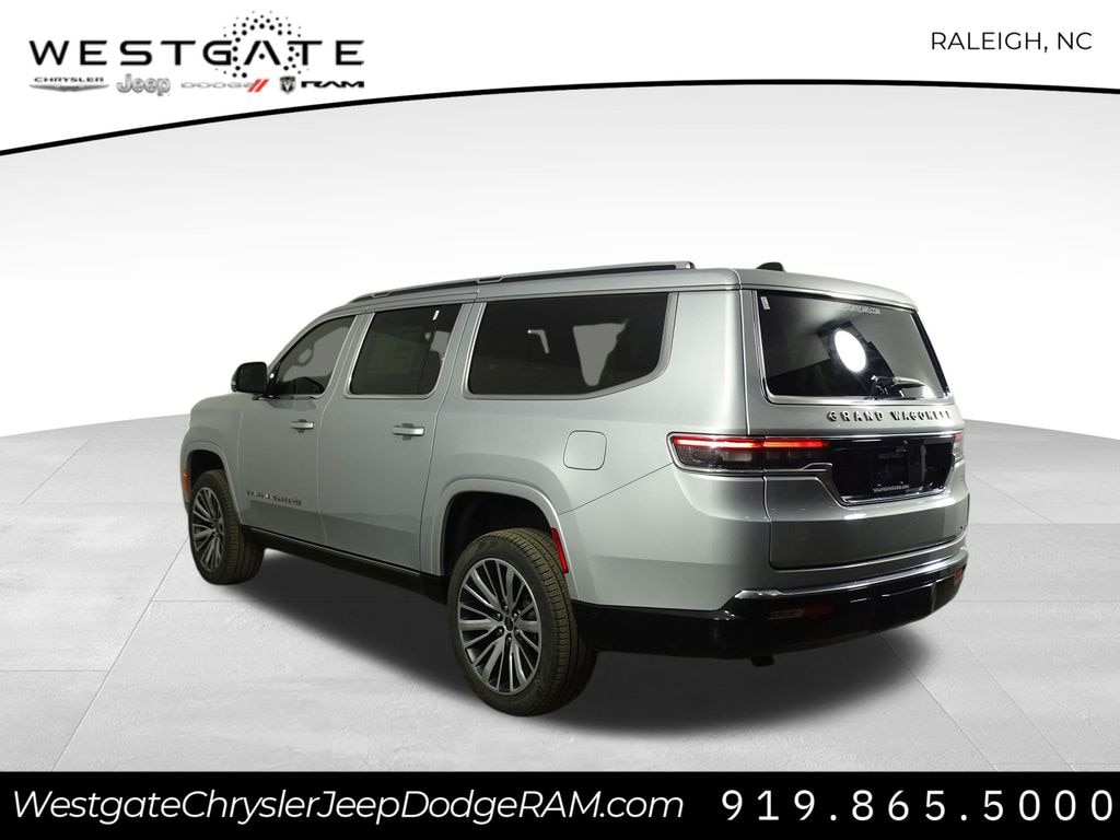 Silver Zynith 2024 Jeep Grand Wagoneer L Series III 4WD 8-Speed Automatic 3.0L I6 3.92 Rear Axle Ratio, 3rd row seats: bench, 4-Wheel Disc Brakes, ABS brakes, Adjustable pedals, Air Conditioning, Alloy wheels, AM/FM radio: SiriusXM with 360L, Amazon Fire TV Built-In, Anti-whiplash front head restraints, Apple CarPlay/Android Auto, Audio memory, Auto High-beam Headlights, Auto-dimming door mirrors, Auto-dimming Rear-View mirror, Auto-leveling suspension, Automatic temperature control, Body Color Roof w/PXJ, Brake assist, Bumpers: body-color, Compass, Delay-off headlights, Driver door bin, Driver vanity mirror, Driver's Seat Mounted Armrest, Dual front impact airbags, Dual front side impact airbags, Electronic Stability Control, Emergency communication system, Four wheel independent suspension, Front anti-roll bar, Front Bucket Seats, Front Center Armrest w/Storage, Front dual zone A/C, Front fog lights, Front reading lights, Fully automatic headlights, Garage door transmitter, Genuine wood console insert, Genuine wood dashboard insert, Genuine wood door panel insert, HD Trailer Tow Package, Heads-Up Display, Heated door mirrors, Heated front seats, Heated rear seats, Heated steering wheel, Heavy-Duty Engine Cooling, Illuminated entry, Knee airbag, Leather steering wheel, Low tire pressure warning, Memory seat, Navigation System, Night vision lights, Normal Duty Suspension, Occupant sensing airbag, Outside temperature display, Overhead airbag, Overhead console, Panic alarm, Passenger door bin, Passenger seat mounted armrest, Passenger vanity mirror, Pedal memory, Power adjustable front head restraints, Power door mirrors, Power driver seat, Power Liftgate, Power moonroof, Power passenger seat, Power steering, Power windows, Premium Leather Trimmed Bucket Seats, Quick Order Package 28W, Radio data system, Radio: Uconnect 5 Nav w/12.0" Display, Rain sensing wipers, Rear air conditioning, Rear anti-roll bar, Rear dual zone A/C, Rear reading lights, Rear seat center armrest, Rear Seat Video Group 1, Rear window defroster, Rear window wiper, Reclining 3rd row seat, Remote keyless entry, Removable Rear Tow Hook, Roof rack, Seatback Video Screens, Security system, Speed control, Speed-sensing steering, Speed-Sensitive Wipers, Split folding rear seat, Steering wheel memory, Steering wheel mounted audio controls, Tachometer, Telescoping steering wheel, Tilt steering wheel, Traction control, Trailer Brake Control, Trailer Hitch Zoom, Trip computer, Turn signal indicator mirrors, Two Tone Paint Group, Variably intermittent wipers, Ventilated front seats, Ventilated rear seats, Video USB Port, Voltmeter, Wheels: 22" x 9.0" Premium 4 Aluminum.