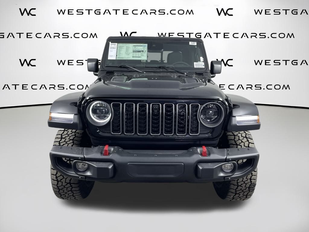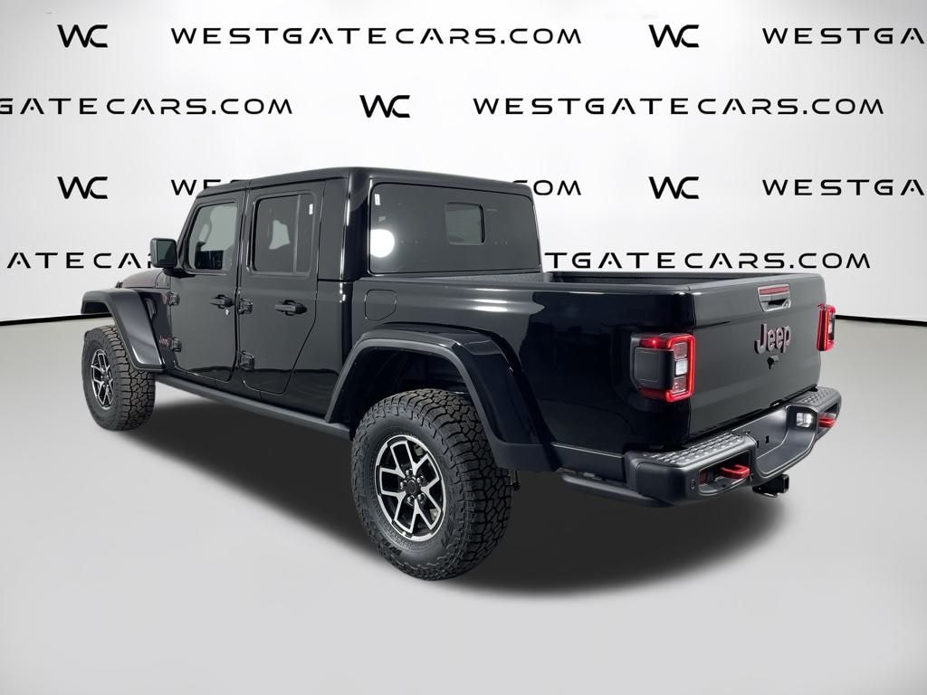 Black Clearcoat 2025 Jeep Gladiator Rubicon 4WD 8-Speed Automatic 3.6L V6 24V VVT 12.3" Touchscreen Display, 4-Wheel Disc Brakes, 4.10 Rear Axle Ratio, 4G LTE Wi-Fi Hot Spot, 8 Speakers, 97 MPH Vehicle Max Speed Calibration, ABS brakes, Air Conditioning, Alexa Built-In, Alloy wheels, Alpine Premium Audio System, AM/FM radio: SiriusXM, Apple CarPlay, Apple CarPlay/Android Auto, Auto High Beam Headlamp Control, Auto-Dimming Rear-View Mirror, Automatic temperature control, Blind Spot & Cross Path Detection, Bluetooth Wireless Speaker, Body Color 3-Piece Hard Top, Body Color Rubicon Highline Flare, Brake assist, Cloth Low-Back Bucket Seats, Compass, Connected Travel & Traffic Services, Connectivity - US/Canada, Delay-off headlights, Driver door bin, Driver vanity mirror, Dual front impact airbags, Dual front side impact airbags, Electronic Stability Control, Emergency communication system: Jeep Connect, Freedom Panel Storage Bag, Front anti-roll bar, Front Bucket Seats, Front Center Armrest w/Storage, Front dual zone A/C, Front fog lights, Front reading lights, Full Length Floor Console Premium Armrest, Fully automatic headlights, Google Android Auto, GPS Navigation, Heated door mirrors, Heated Front Seats, Heated Steering Wheel, Illuminated entry, Integrated Off-Road Camera, Integrated roll-over protection, Integrated Voice Command w/Bluetooth, Leather Wrapped Park Brake Handle, Leather Wrapped Shift Knob, Low tire pressure warning, MOPAR Hardtop Headliner, MOPAR Spray In Bedliner, Occupant sensing airbag, Outside temperature display, Overhead airbag, Panic alarm, ParkSense Rear Park Assist System, Passenger door bin, Passenger vanity mirror, Performance Suspension, Power 4-Way Driver Lumbar Adjust, Power 4-Way Passenger Lumbar Adjust, Power Adjust 8-Way Driver Seat, Power Adjust 8-Way Front Passenger Seat, Power Adjust Nappa Leather Seats, Power door mirrors, Power steering, Power windows, Premium Door Trim Panel, Quick Order Package 24Y Rubicon X, Radio data system, Radio: Uconnect 5 Nav w/12.3" Display, Radio: Uconnect 5 w/12.3" Display, Rear anti-roll bar, Rear Armrest w/Cupholder Seat, Rear reading lights, Rear Sliding Window, Rear Window Defroster, Remote keyless entry, Security system, SiriusXM Radio Service, SiriusXM w/360L, Speed control, Split folding rear seat, Steel Front Bumper, Steering wheel mounted audio controls, Tachometer, Telescoping steering wheel, Tilt steering wheel, Traction control, Trip computer, Universal Garage Door Opener, USB Host Flip, Variably intermittent wipers, Voltmeter, Wheels: 17" x 7.5" Machined/Painted Black.