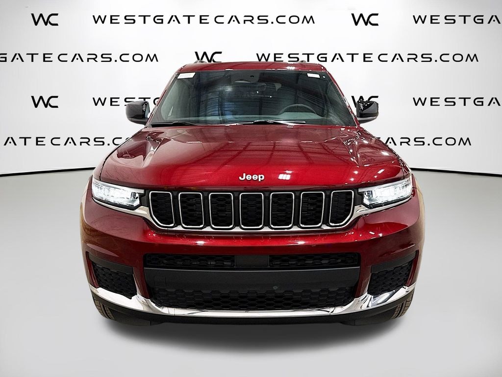 Velvet Red Pearlcoat 2025 Jeep Grand Cherokee L Laredo 4WD 8-Speed Automatic 3.6L V6 24V VVT 115V Auxiliary Power Outlet, 3.45 Rear Axle Ratio, 3rd Row Charge-Only USB Ports, 3rd row seats: split-bench, 4-Wheel Disc Brakes, 6 Speakers, ABS brakes, Air Conditioning, Alloy wheels, AM/FM radio: SiriusXM, Anti-whiplash front head restraints, Automatic temperature control, Brake assist, Bumpers: body-color, Cloth Seats, Compass, Delay-off headlights, Driver door bin, Driver vanity mirror, Dual front impact airbags, Dual front side impact airbags, Electronic Stability Control, Emergency communication system, Four wheel independent suspension, Front anti-roll bar, Front Bucket Seats, Front Center Armrest w/Storage, Front dual zone A/C, Front reading lights, Fully automatic headlights, Heated door mirrors, Heated Front Seats, Heated Steering Wheel, Illuminated entry, Knee airbag, Laredo X, Low tire pressure warning, Luxury Tech Group I, Manual Fold Seatbacks, Model Year Tracking, Normal Duty Suspension, Occupant sensing airbag, Outside temperature display, Overhead airbag, Overhead console, Panic alarm, ParkView Rear Back-Up Camera, Passenger door bin, Passenger vanity mirror, Power door mirrors, Power driver seat, Power Liftgate, Power steering, Power Sunroof, Power windows, Quick Order Package 23D Laredo X, Radio data system, Radio: Uconnect 5 with 8.4" Display, Rain Sensitive Windshield Wipers, Rear air conditioning, Rear anti-roll bar, Rear reading lights, Rear window defroster, Rear window wiper, Reclining 3rd row seat, Remote keyless entry, Remote Start System, Security system, Selectable Tire Fill Alert, Speed control, Speed-Sensitive Wipers, Split folding rear seat, Spoiler, Steering wheel mounted audio controls, Tachometer, Telescoping steering wheel, Tilt steering wheel, Traction control, Trip computer, Variably intermittent wipers, Voltmeter, Wheels: 18" x 8.0" Fully Painted Aluminum, Wireless Charging Pad.
