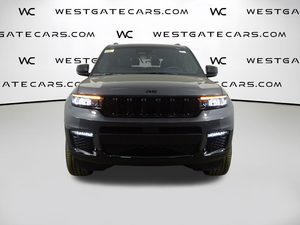 Baltic Gray Metallic Clearcoat 2025 Jeep Grand Cherokee L Limited 4WD 8-Speed Automatic 3.6L V6 24V VVT 3.45 Rear Axle Ratio, 3rd row seats: split-bench, 4-Wheel Disc Brakes, 6 Speakers, ABS brakes, Active Noise Control System, Air Conditioning, Alloy wheels, AM/FM radio: SiriusXM with 360L, Anti-whiplash front head restraints, Audio memory, Auto High-beam Headlights, Automatic temperature control, Black Painted Roof, Blackout Model, Brake assist, Bumpers: body-color, Capri Leatherette Seats, Compass, Delay-off headlights, Delete Limited Badge, Driver door bin, Driver vanity mirror, Dual front impact airbags, Dual front side impact airbags, Dual-Pane Panoramic Sunroof, Electronic Stability Control, Emergency communication system, Four wheel independent suspension, Front anti-roll bar, Front Bucket Seats, Front Center Armrest w/Storage, Front dual zone A/C, Front fog lights, Front reading lights, Fully automatic headlights, Garage door transmitter, Gloss Black Exterior Accents, Heated door mirrors, Heated front seats, Heated rear seats, Heated steering wheel, Illuminated entry, Interior Rear Facing Camera, Knee airbag, Low tire pressure warning, Manual Fold Seatbacks, Memory seat, Model Year Tracking, Navigation System, Normal Duty Suspension, Occupant sensing airbag, Outside temperature display, Overhead airbag, Overhead console, Panic alarm, ParkView Rear Back-Up Camera, Passenger door bin, Passenger vanity mirror, Power door mirrors, Power driver seat, Power Liftgate, Power passenger seat, Power steering, Power windows, Quick Order Package 22E, Radio data system, Radio: Uconnect 5 Nav with 10.1" Display, Rear air conditioning, Rear anti-roll bar, Rear reading lights, Rear window defroster, Rear window wiper, Reclining 3rd row seat, Remote keyless entry, Security system, Speed control, Speed-Sensitive Wipers, Split folding rear seat, Spoiler, Steering wheel mounted audio controls, Tachometer, Telescoping steering wheel, Tilt steering wheel, Traction control, Trip computer, Turn signal indicator mirrors, Variably intermittent wipers, Voltmeter, Wheels: 18" x 8.0" Polished/Painted Aluminum, Wheels: 20" x 8.5" Black Painted Aluminum.