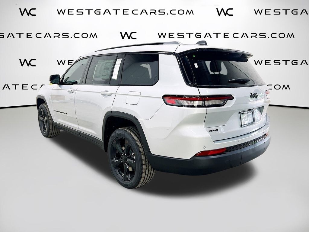 Silver Zynith 2025 Jeep Grand Cherokee L Altitude X 4WD 8-Speed Automatic 3.6L V6 24V VVT 115V Auxiliary Power Outlet, 3.45 Rear Axle Ratio, 3rd Row Charge-Only USB Ports, 3rd row seats: split-bench, 4-Wheel Disc Brakes, 6 Speakers, ABS brakes, Air Conditioning, Alloy wheels, Altitude X, AM/FM radio: SiriusXM, Anti-whiplash front head restraints, Automatic temperature control, Black Headliner, Brake assist, Bumpers: body-color, Capri Leatherette/Suede Seats, Cloth Seats, Compass, Delay-off headlights, Delete Laredo Badge, Driver door bin, Driver vanity mirror, Dual front impact airbags, Dual front side impact airbags, Electronic Stability Control, Emergency communication system, Four wheel independent suspension, Front anti-roll bar, Front Bucket Seats, Front Center Armrest w/Storage, Front dual zone A/C, Front reading lights, Fully automatic headlights, Gloss Black Exterior Accents, Heated door mirrors, Heated Front Seats, Heated Steering Wheel, Illuminated entry, Knee airbag, Low tire pressure warning, Manual Fold Seatbacks, Model Year Tracking, Normal Duty Suspension, Occupant sensing airbag, Outside temperature display, Overhead airbag, Overhead console, Panic alarm, ParkView Rear Back-Up Camera, Passenger door bin, Passenger vanity mirror, Power door mirrors, Power driver seat, Power Liftgate, Power steering, Power Sunroof, Power windows, Quick Order Package 23M Altitude X, Radio data system, Radio: Uconnect 5 with 8.4" Display, Rain Sensitive Windshield Wipers, Rear air conditioning, Rear anti-roll bar, Rear reading lights, Rear window defroster, Rear window wiper, Reclining 3rd row seat, Remote keyless entry, Remote Start System, Security system, Selectable Tire Fill Alert, Speed control, Speed-Sensitive Wipers, Split folding rear seat, Spoiler, Steering wheel mounted audio controls, Tachometer, Telescoping steering wheel, Tilt steering wheel, Traction control, Trip computer, Variably intermittent wipers, Voltmeter, Wheels: 18" x 8.0" Fully Painted Aluminum, Wheels: 18" x 8.0" Fully Painted Aluminum 1, Wheels: 20" x 8.5" Gloss Black Painted Aluminum, Wireless Charging Pad.