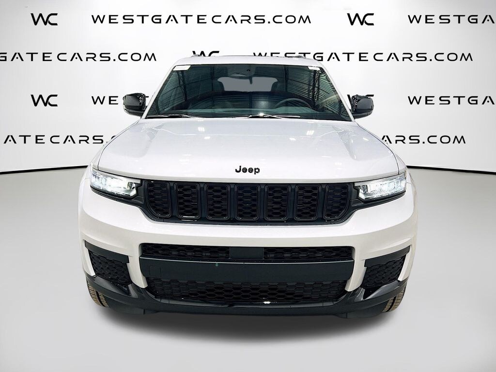 Silver Zynith 2025 Jeep Grand Cherokee L Altitude X 4WD 8-Speed Automatic 3.6L V6 24V VVT 115V Auxiliary Power Outlet, 3.45 Rear Axle Ratio, 3rd Row Charge-Only USB Ports, 3rd row seats: split-bench, 4-Wheel Disc Brakes, 6 Speakers, ABS brakes, Air Conditioning, Alloy wheels, Altitude X, AM/FM radio: SiriusXM, Anti-whiplash front head restraints, Automatic temperature control, Black Headliner, Brake assist, Bumpers: body-color, Capri Leatherette/Suede Seats, Cloth Seats, Compass, Delay-off headlights, Delete Laredo Badge, Driver door bin, Driver vanity mirror, Dual front impact airbags, Dual front side impact airbags, Electronic Stability Control, Emergency communication system, Four wheel independent suspension, Front anti-roll bar, Front Bucket Seats, Front Center Armrest w/Storage, Front dual zone A/C, Front reading lights, Fully automatic headlights, Gloss Black Exterior Accents, Heated door mirrors, Heated Front Seats, Heated Steering Wheel, Illuminated entry, Knee airbag, Low tire pressure warning, Manual Fold Seatbacks, Model Year Tracking, Normal Duty Suspension, Occupant sensing airbag, Outside temperature display, Overhead airbag, Overhead console, Panic alarm, ParkView Rear Back-Up Camera, Passenger door bin, Passenger vanity mirror, Power door mirrors, Power driver seat, Power Liftgate, Power steering, Power Sunroof, Power windows, Quick Order Package 23M Altitude X, Radio data system, Radio: Uconnect 5 with 8.4" Display, Rain Sensitive Windshield Wipers, Rear air conditioning, Rear anti-roll bar, Rear reading lights, Rear window defroster, Rear window wiper, Reclining 3rd row seat, Remote keyless entry, Remote Start System, Security system, Selectable Tire Fill Alert, Speed control, Speed-Sensitive Wipers, Split folding rear seat, Spoiler, Steering wheel mounted audio controls, Tachometer, Telescoping steering wheel, Tilt steering wheel, Traction control, Trip computer, Variably intermittent wipers, Voltmeter, Wheels: 18" x 8.0" Fully Painted Aluminum, Wheels: 18" x 8.0" Fully Painted Aluminum 1, Wheels: 20" x 8.5" Gloss Black Painted Aluminum, Wireless Charging Pad.