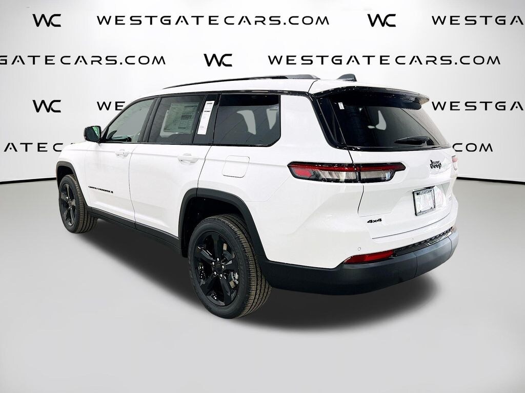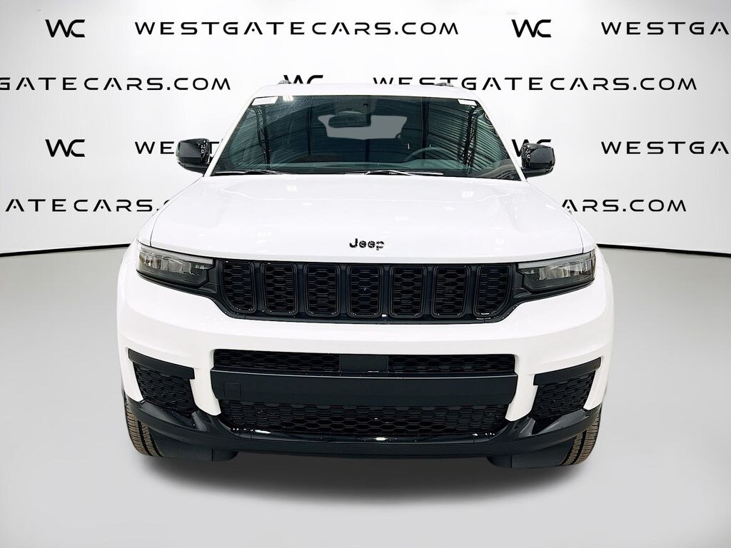 Bright White Clearcoat 2025 Jeep Grand Cherokee L Altitude 4WD 8-Speed Automatic 3.6L V6 24V VVT 115V Auxiliary Power Outlet, 3.45 Rear Axle Ratio, 3rd Row Charge-Only USB Ports, 3rd row seats: split-bench, 4-Wheel Disc Brakes, 6 Speakers, ABS brakes, Air Conditioning, Alloy wheels, Altitude Appearance Package, AM/FM radio: SiriusXM, Anti-whiplash front head restraints, Automatic temperature control, Black Headliner, Brake assist, Bumpers: body-color, Capri Leatherette/Suede Seats, Cloth Seats, Compass, Delay-off headlights, Delete Laredo Badge, Driver door bin, Driver vanity mirror, Dual front impact airbags, Dual front side impact airbags, Electronic Stability Control, Emergency communication system, Four wheel independent suspension, Front anti-roll bar, Front Bucket Seats, Front Center Armrest w/Storage, Front dual zone A/C, Front reading lights, Fully automatic headlights, Gloss Black Exterior Accents, Heated door mirrors, Heated Front Seats, Heated Steering Wheel, Illuminated entry, Knee airbag, Low tire pressure warning, Manual Fold Seatbacks, Model Year Tracking, Normal Duty Suspension, Occupant sensing airbag, Outside temperature display, Overhead airbag, Overhead console, Panic alarm, ParkView Rear Back-Up Camera, Passenger door bin, Passenger vanity mirror, Power door mirrors, Power driver seat, Power Liftgate, Power steering, Power windows, Quick Order Package 23B Altitude, Radio data system, Radio: Uconnect 5 with 8.4" Display, Rain Sensitive Windshield Wipers, Rear air conditioning, Rear anti-roll bar, Rear reading lights, Rear window defroster, Rear window wiper, Reclining 3rd row seat, Remote keyless entry, Remote Start System, Security system, Selectable Tire Fill Alert, Speed control, Speed-Sensitive Wipers, Split folding rear seat, Spoiler, Steering wheel mounted audio controls, Tachometer, Telescoping steering wheel, Tilt steering wheel, Traction control, Trip computer, Variably intermittent wipers, Voltmeter, Wheels: 18" x 8.0" Fully Painted Aluminum, Wheels: 18" x 8.0" Fully Painted Aluminum 1, Wheels: 20" x 8.5" Gloss Black Painted Aluminum, Wireless Charging Pad.