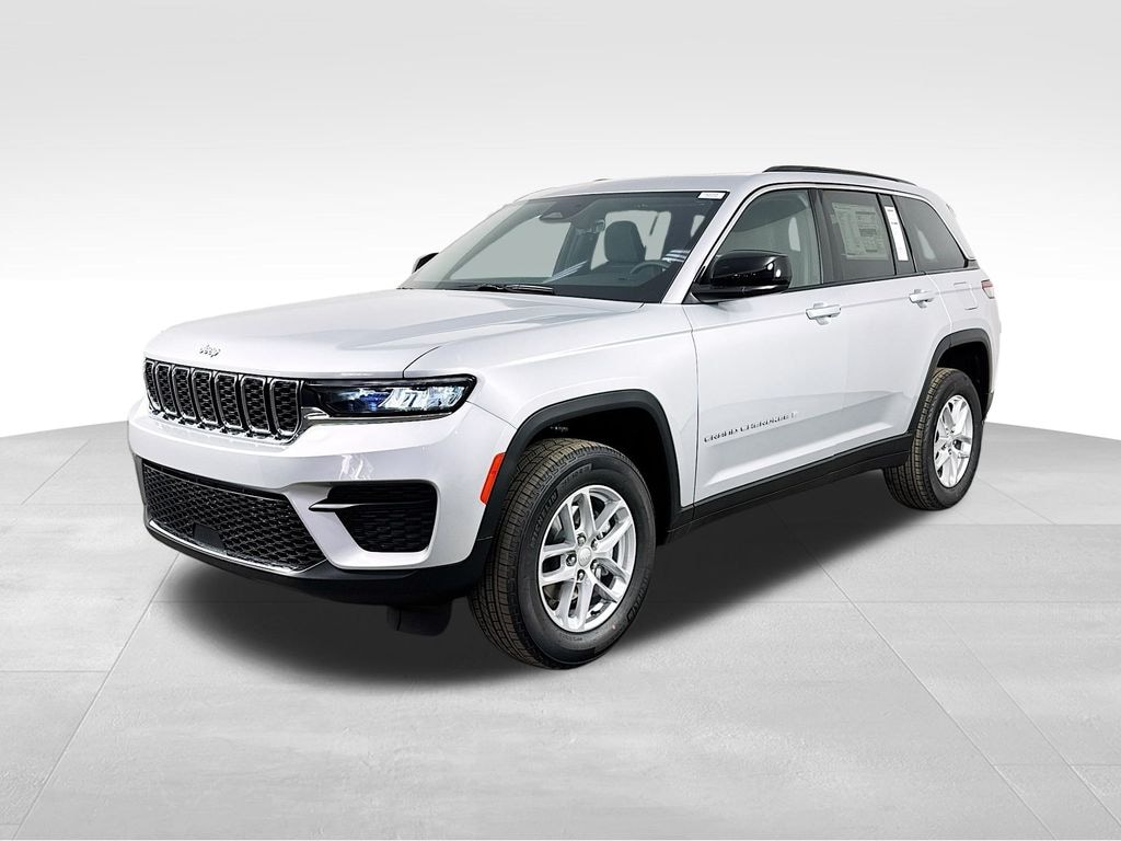 Silver Zynith 2025 Jeep Grand Cherokee Laredo X 4WD 8-Speed Automatic 3.6L V6 24V VVT 4WD, 115V Auxiliary Power Outlet, 4-Wheel Disc Brakes, 6 Speakers, ABS brakes, Air Conditioning, Alloy wheels, AM/FM radio: SiriusXM, Anti-whiplash front head restraints, Automatic temperature control, Brake assist, Bumpers: body-color, Cloth Seats, Compass, Delay-off headlights, Driver door bin, Driver vanity mirror, Dual front impact airbags, Dual front side impact airbags, Electronic Stability Control, Emergency communication system, Four wheel independent suspension, Front anti-roll bar, Front Bucket Seats, Front Center Armrest w/Storage, Front dual zone A/C, Front reading lights, Fully automatic headlights, Heated door mirrors, Heated Front Seats, Heated Steering Wheel, Illuminated entry, Knee airbag, Laredo X, Low tire pressure warning, Luxury Tech Group I, Model Year Tracking, Normal Duty Suspension, Occupant sensing airbag, Outside temperature display, Overhead airbag, Overhead console, Panic alarm, ParkView Rear Back-Up Camera, Passenger door bin, Passenger vanity mirror, Power door mirrors, Power driver seat, Power Liftgate, Power steering, Power Sunroof, Power windows, Quick Order Package 23D Laredo X, Radio data system, Radio: Uconnect 5 w/8.4" Display, Rain Sensitive Windshield Wipers, Rear anti-roll bar, Rear reading lights, Rear window defroster, Rear window wiper, Remote keyless entry, Remote Start System, Satellite Radio, Secondary Active Grille Shutters, Security system, Selectable Tire Fill Alert, Speed control, Speed-Sensitive Wipers, Split folding rear seat, Spoiler, Steering wheel mounted audio controls, Tachometer, Telescoping steering wheel, Tilt steering wheel, Traction control, Trip computer, Variably intermittent wipers, Voltmeter, Wheels: 17" x 6.5" Fully Painted Aluminum, Wheels: 18" x 8" Fully Painted Aluminum, Wireless Charging Pad, 4WD.