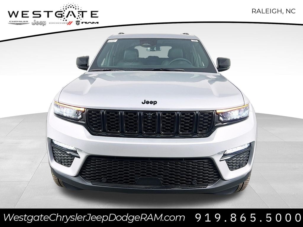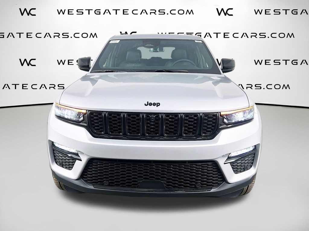 Silver Zynith 2025 Jeep Grand Cherokee Limited 4WD 8-Speed Automatic 3.6L V6 24V VVT 4WD, 220 Amp Alternator, 2nd-Row Manual Window Shades, 4-Wheel Disc Brakes, 506 Watt Amplifier, 6 Speakers, 7 & 4-Pin Wiring Harness, 9 Amplified Speakers w/Subwoofer, ABS brakes, Active Noise Control System, Air Conditioning, Alloy wheels, AM/FM radio: SiriusXM with 360L, Anti-whiplash front head restraints, Audio memory, Auto High-beam Headlights, Auto-Dimming Exterior Driver Mirror, Automatic Headlamp Levelling System, Automatic temperature control, Black Appearance Package, Brake assist, Bumpers: body-color, Capri Leatherette Seats, Capri Leatherette w/Axis II Seats, Class IV Receiver Hitch, Compass, Delay-off headlights, Driver door bin, Driver vanity mirror, Dual front impact airbags, Dual front side impact airbags, Dual-Pane Panoramic Sunroof, Electronic Stability Control, Emergency communication system, Four wheel independent suspension, Front anti-roll bar, Front Bucket Seats, Front Center Armrest w/Storage, Front dual zone A/C, Front fog lights, Front reading lights, Front/Rear Doors & Liftgate w/Passive Entry, Fully automatic headlights, Garage door transmitter, Gloss Black Exterior Accents, Heated door mirrors, Heated front seats, Heated rear seats, Heated steering wheel, Heavy-Duty Engine Cooling, Illuminated entry, Integrated Off-Road Camera, Intersection Collision Assist System, Knee airbag, Low tire pressure warning, Luxury Tech Group II, Memory seat, Memory Steering Column, Model Year Tracking, Navigation System, Normal Duty Suspension, Occupant sensing airbag, Outside temperature display, Overhead airbag, Overhead console, Panic alarm, ParkSense Front/Rear Park Assist w/Stop, ParkView Rear Back-Up Camera, Passenger door bin, Passenger vanity mirror, Power door mirrors, Power driver seat, Power Liftgate, Power passenger seat, Power steering, Power Tilt/Telescope Steering Column, Power windows, Quick Order Package 23E (DISC), Radio data system, Radio: Uconnect 5 Nav w/10.1" Display, Rain Sensitive Windshield Wipers, Rear anti-roll bar, Rear Back-Up Camera Washer, Rear Load Levelling Suspension, Rear reading lights, Rear window defroster, Rear window wiper, Rearview Autodim Digital Display Mirror, Remote keyless entry, Security system, Speed control, Speed-Sensitive Wipers, Split folding rear seat, Spoiler, Steering wheel mounted audio controls, Surround View Camera System, Tachometer, Telescoping steering wheel, Tilt steering wheel, Traction control, Trailer Hitch Zoom, Trailer Tow Package, Trip computer, Turn signal indicator mirrors, Variably intermittent wipers, Ventilated Front Seats, Voltmeter, Wheels: 18" x 8" Polished/Painted Aluminum, Wheels: 20" x 8.5" Gloss Black Painted Aluminum, Wireless Charging Pad, 4WD.