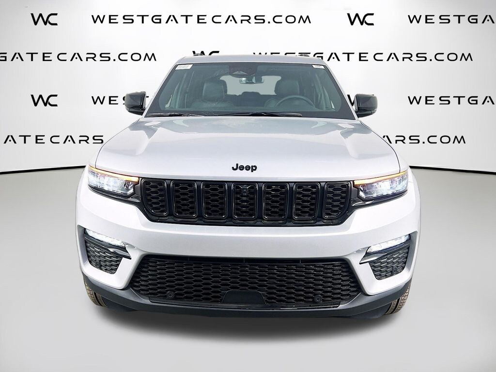 Silver Zynith 2025 Jeep Grand Cherokee Limited 4WD 8-Speed Automatic 3.6L V6 24V VVT 4WD, 220 Amp Alternator, 2nd-Row Manual Window Shades, 4-Wheel Disc Brakes, 506 Watt Amplifier, 6 Speakers, 7 and 4-Pin Wiring Harness, 9 Amplified Speakers with Subwoofer, ABS brakes, Active Noise Control System, Air Conditioning, Alloy wheels, AM/FM radio: SiriusXM with 360L, Anti-whiplash front head restraints, Audio memory, Auto High-beam Headlights, Auto-Dimming Exterior Driver Mirror, Automatic Headlamp Levelling System, Automatic temperature control, Black Appearance Package, Brake assist, Bumpers: body-color, Capri Leatherette Seats, Capri Leatherette with Axis II Seats, Class IV Receiver Hitch, Compass, Delay-off headlights, Driver door bin, Driver vanity mirror, Dual front impact airbags, Dual front side impact airbags, Dual-Pane Panoramic Sunroof, Electronic Stability Control, Emergency communication system, Four wheel independent suspension, Front anti-roll bar, Front Bucket Seats, Front Center Armrest w/Storage, Front dual zone A/C, Front fog lights, Front reading lights, Front/Rear Doors and Liftgate with Passive Entry, Fully automatic headlights, Garage door transmitter, Gloss Black Exterior Accents, Heated door mirrors, Heated front seats, Heated rear seats, Heated steering wheel, Heavy-Duty Engine Cooling, Illuminated entry, Integrated Off-Road Camera, Intersection Collision Assist System, Knee airbag, Low tire pressure warning, Luxury Tech Group II, Memory seat, Memory Steering Column, Model Year Tracking, Navigation System, Normal Duty Suspension, Occupant sensing airbag, Outside temperature display, Overhead airbag, Overhead console, Panic alarm, ParkSense Front/Rear Park Assist with Stop, ParkView Rear Back-Up Camera, Passenger door bin, Passenger vanity mirror, Power door mirrors, Power driver seat, Power Liftgate, Power passenger seat, Power steering, Power Tilt/Telescope Steering Column, Power windows, Quick Order Package 23E, Radio data system, Radio: Uconnect 5 Nav with 10.1" Display, Rain Sensitive Windshield Wipers, Rear anti-roll bar, Rear Back-Up Camera Washer, Rear Load Levelling Suspension, Rear reading lights, Rear window defroster, Rear window wiper, Rearview Autodim Digital Display Mirror, Remote keyless entry, Security system, Speed control, Speed-Sensitive Wipers, Split folding rear seat, Spoiler, Steering wheel mounted audio controls, Surround View Camera System, Tachometer, Telescoping steering wheel, Tilt steering wheel, Traction control, Trailer Hitch Zoom, Trailer Tow Package, Trip computer, Turn signal indicator mirrors, Variably intermittent wipers, Ventilated Front Seats, Voltmeter, Wheels: 18" x 8" Polished/Painted Aluminum, Wheels: 20" x 8.5" Gloss Black Painted Aluminum, Wireless Charging Pad, 4WD.