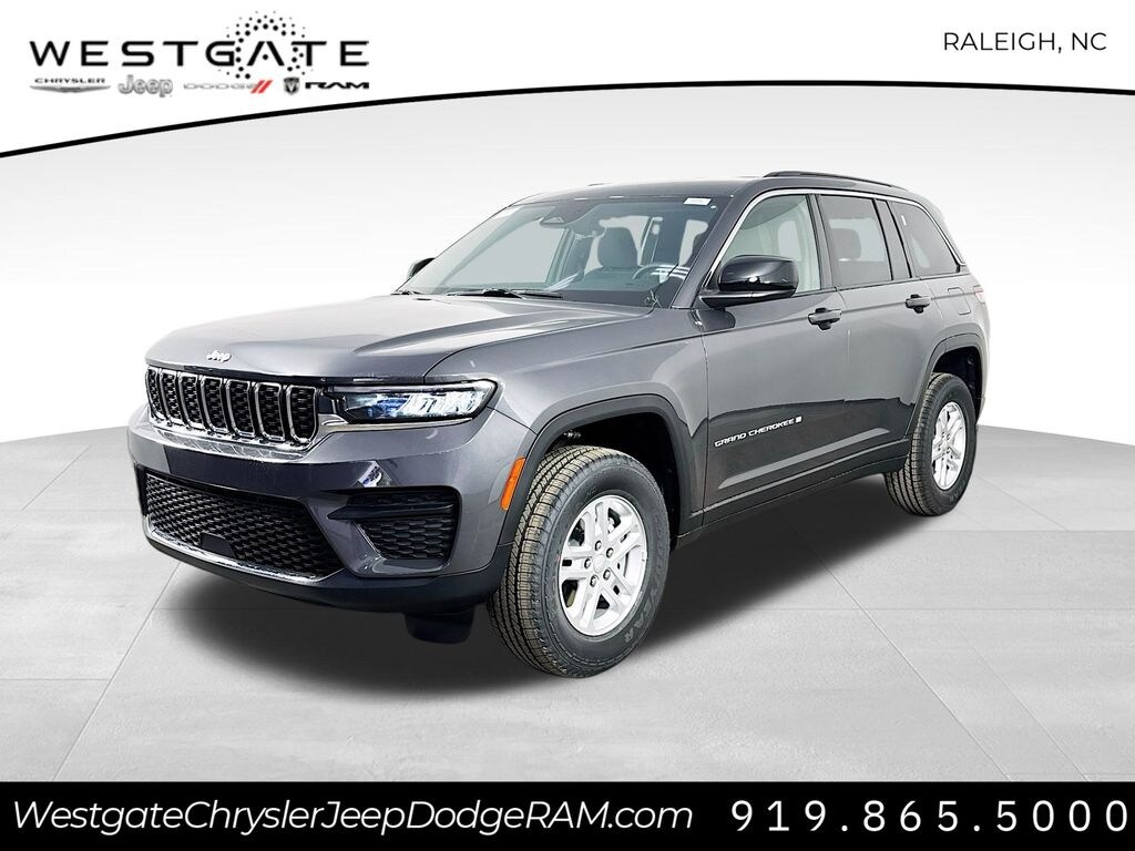 Baltic Gray Metallic Clearcoat 2025 Jeep Grand Cherokee Laredo 4WD 8-Speed Automatic 3.6L V6 24V VVT 4WD, 115V Auxiliary Power Outlet, 4-Wheel Disc Brakes, 6 Speakers, ABS brakes, Air Conditioning, Alloy wheels, AM/FM radio: SiriusXM, Anti-whiplash front head restraints, Automatic temperature control, Brake assist, Bumpers: body-color, Cloth Seats, Compass, Delay-off headlights, Driver door bin, Driver vanity mirror, Dual front impact airbags, Dual front side impact airbags, Electronic Stability Control, Emergency communication system, Four wheel independent suspension, Front anti-roll bar, Front Bucket Seats, Front Center Armrest w/Storage, Front dual zone A/C, Front reading lights, Fully automatic headlights, Heated door mirrors, Heated Front Seats, Heated Steering Wheel, Illuminated entry, Knee airbag, Low tire pressure warning, Luxury Tech Group I, Model Year Tracking, Normal Duty Suspension, Occupant sensing airbag, Outside temperature display, Overhead airbag, Overhead console, Panic alarm, ParkView Rear Back-Up Camera, Passenger door bin, Passenger vanity mirror, Power door mirrors, Power driver seat, Power Liftgate, Power steering, Power windows, Quick Order Package 23A Laredo, Radio data system, Radio: Uconnect 5 w/8.4" Display, Rain Sensitive Windshield Wipers, Rear anti-roll bar, Rear reading lights, Rear window defroster, Rear window wiper, Remote keyless entry, Remote Start System, Satellite Radio, Secondary Active Grille Shutters, Security system, Selectable Tire Fill Alert, Speed control, Speed-Sensitive Wipers, Split folding rear seat, Spoiler, Steering wheel mounted audio controls, Tachometer, Telescoping steering wheel, Tilt steering wheel, Traction control, Trip computer, Variably intermittent wipers, Voltmeter, Wheels: 17" x 6.5" Fully Painted Aluminum, Wireless Charging Pad, 4WD.