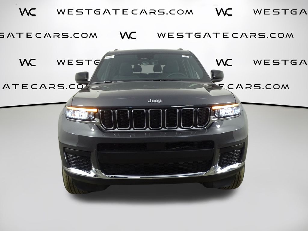 Baltic Gray Metallic Clearcoat 2025 Jeep Grand Cherokee L Laredo 4WD 8-Speed Automatic 3.6L V6 24V VVT 115V Auxiliary Power Outlet, 3.45 Rear Axle Ratio, 3rd Row Charge-Only USB Ports, 3rd row seats: split-bench, 4-Wheel Disc Brakes, 6 Speakers, ABS brakes, Air Conditioning, Alloy wheels, AM/FM radio: SiriusXM, Anti-whiplash front head restraints, Automatic temperature control, Brake assist, Bumpers: body-color, Cloth Seats, Compass, Delay-off headlights, Driver door bin, Driver vanity mirror, Dual front impact airbags, Dual front side impact airbags, Electronic Stability Control, Emergency communication system, Four wheel independent suspension, Front anti-roll bar, Front Bucket Seats, Front Center Armrest w/Storage, Front dual zone A/C, Front reading lights, Fully automatic headlights, Heated door mirrors, Heated Front Seats, Heated Steering Wheel, Illuminated entry, Knee airbag, Laredo X, Low tire pressure warning, Luxury Tech Group I, Manual Fold Seatbacks, Model Year Tracking, Normal Duty Suspension, Occupant sensing airbag, Outside temperature display, Overhead airbag, Overhead console, Panic alarm, ParkView Rear Back-Up Camera, Passenger door bin, Passenger vanity mirror, Power door mirrors, Power driver seat, Power Liftgate, Power steering, Power Sunroof, Power windows, Quick Order Package 23D Laredo X, Radio data system, Radio: Uconnect 5 with 8.4" Display, Rain Sensitive Windshield Wipers, Rear air conditioning, Rear anti-roll bar, Rear reading lights, Rear window defroster, Rear window wiper, Reclining 3rd row seat, Remote keyless entry, Remote Start System, Security system, Selectable Tire Fill Alert, Speed control, Speed-Sensitive Wipers, Split folding rear seat, Spoiler, Steering wheel mounted audio controls, Tachometer, Telescoping steering wheel, Tilt steering wheel, Traction control, Trip computer, Variably intermittent wipers, Voltmeter, Wheels: 18" x 8.0" Fully Painted Aluminum, Wireless Charging Pad.