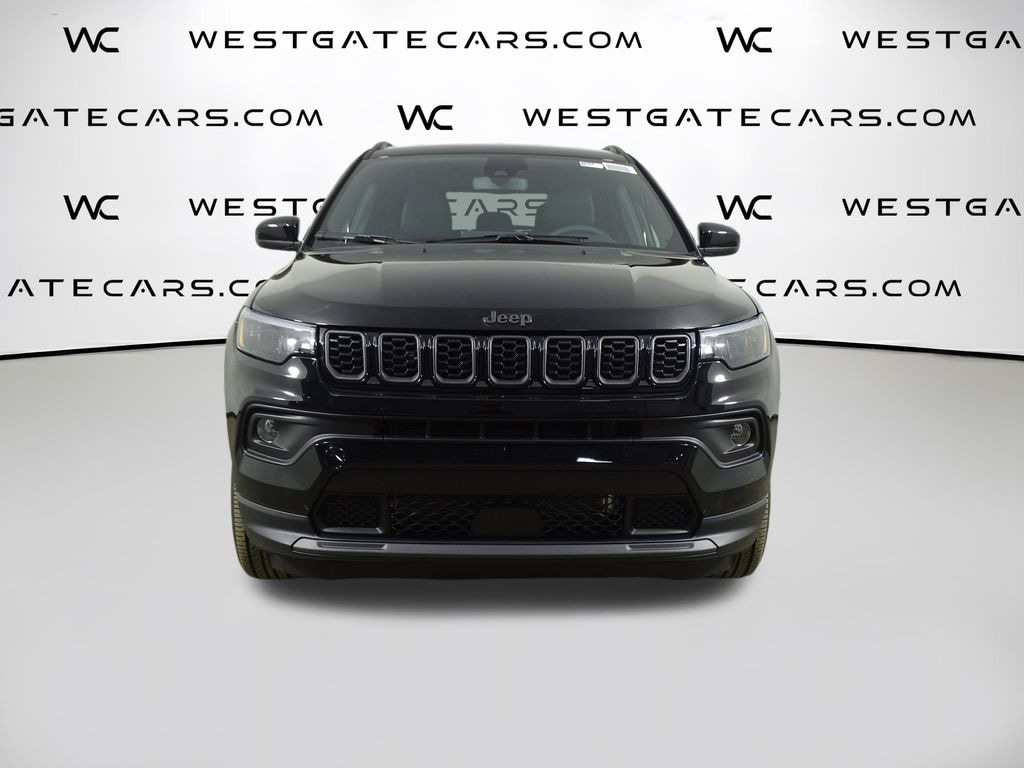 Diamond Black Crystal Pearlcoat 2026 Jeep Compass Latitude 4WD 8-Speed Automatic 2.0L I4 DOHC 4WD, 10.1" Touchscreen Display, 3.73 Final Drive Ratio, 4-Wheel Disc Brakes, 4G LTE Wi-Fi Hot Spot, 6 Speakers, ABS brakes, Air Conditioning, Alloy wheels, Altitude Special Edition, AM/FM radio: SiriusXM, Auto High-beam Headlights, Auto-dimming Rear-View mirror, Automatic temperature control, Black Day Light Opening Moldings, Bluetooth Handsfree Phone & Audio, Brake assist, Bumpers: body-color, Compass, Delay-off headlights, Driver door bin, Driver vanity mirror, Dual front impact airbags, Dual front side impact airbags, Electronic Stability Control, Emergency communication system, Four wheel independent suspension, Front anti-roll bar, Front Bucket Seats, Front Center Armrest w/Storage, Front dual zone A/C, Front fog lights, Front reading lights, Fully automatic headlights, Global Telematics Box Module (TBM), Gloss Black Surround/Neutral Gray Rings, Heated door mirrors, Heated front seats, Heated steering wheel, Illuminated entry, Knee airbag, Leather Shift Knob, Leather steering wheel, Low tire pressure warning, Neutral Gray Exterior Badging, Occupant sensing airbag, Outside temperature display, Overhead airbag, Overhead console, Panic alarm, ParkView Rear Back-Up Camera, Passenger door bin, Passenger vanity mirror, Piano Black Interior Accents, Power door mirrors, Power driver seat, Power steering, Power windows, Premium Cloth/Vinyl Bucket Seats, Quick Order Package 29N Altitude, Radio: Uconnect 5 w/8.4" Display, Rain sensing wipers, Rear anti-roll bar, Rear seat center armrest, Rear window defroster, Rear window wiper, Remote keyless entry, Security system, SiriusXM Satellite Radio, Sliding Sun Visors w/Illuminated Mirrors, Speed control, Split folding rear seat, Spoiler, Steering wheel mounted audio controls, Tachometer, Telescoping steering wheel, Tilt steering wheel, Traction control, Trip computer, Variably intermittent wipers, Wheels: 18" x 7" Gloss Black Painted Aluminum, 4WD.