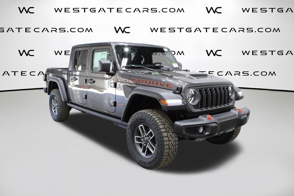 Granite Crystal Metallic Clearcoat 2026 Jeep Gladiator Mojave 4WD 8-Speed Automatic 3.6L V6 24V VVT 110 Mph Vehicle Max Speed Calibration, 12.3" Touchscreen Display, 4-Wheel Disc Brakes, 4.10 Rear Axle Ratio, 4G LTE Wi-Fi Hot Spot, 8 Speakers, ABS brakes, Air Conditioning, Alexa Built-in, Alloy wheels, AM/FM radio: SiriusXM with 360L, Apple CarPlay, Apple CarPlay/Android Auto, Automatic temperature control, Black 3-Piece Hard Top, Brake assist, Compass, Connectivity - US/Canada, Convenience Group, Delay-off headlights, Driver door bin, Driver vanity mirror, Dual front impact airbags, Dual front side impact airbags, Electronic Stability Control, Emergency communication system: Jeep Connect, Freedom Panel Storage Bag, Front anti-roll bar, Front Bucket Seats, Front Center Armrest w/Storage, Front dual zone A/C, Front fog lights, Front reading lights, Fully automatic headlights, Google Android Auto, Heated door mirrors, Heated Front Seats, Heated Steering Wheel, Heavy Duty Suspension with Gas Shocks, Illuminated entry, Integrated roll-over protection, Low tire pressure warning, MyFlexCare Service Plan, Occupant sensing airbag, Outside temperature display, Overhead airbag, Panic alarm, Passenger door bin, Passenger vanity mirror, Power door mirrors, Power steering, Power windows, Premium Cloth Seats with Sport Bolsters, Quick Order Package 24D Mojave, Radio data system, Radio: Uconnect 5 with 12.3" Display, Rear anti-roll bar, Rear reading lights, Rear Sliding Window, Rear Window Defroster, Remote keyless entry, Remote Start System, Security system, Speed control, Split folding rear seat, Steering wheel mounted audio controls, Tachometer, Telescoping steering wheel, Tilt steering wheel, Traction control, Trip computer, Universal Garage Door Opener, USB Host Flip, Variably intermittent wipers, Voltmeter, Wheels: 17" x 7.5" Dark Gray Painted.