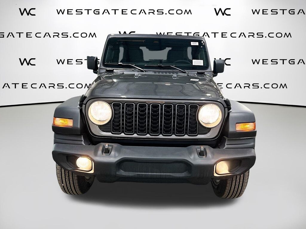 ranite Crystal Metallic Clearcoat 2026 Jeep Wrangler Sport S 4WD 8-Speed Automatic 2.0L I4 DOHC 12.3" Touchscreen Display, 3.45 Overall Top Gear Ratio, 4-Wheel Disc Brakes, 4G LTE Wi-Fi Hot Spot, 8 Speakers, ABS brakes, Advanced Brake Assist, Air Conditioning, AM/FM radio: SiriusXM with 360L, Apple CarPlay, Apple CarPlay/Android Auto, Automatic Headlamps, Aux Battery, Black 3-Piece Hard Top, Brake assist, Cloth Low-Back Bucket Seats, Compass, Connectivity - US/Canada, Corning Gorilla Glass, Deep Tint Sunscreen Windows, Delay-off headlights, Driver door bin, Driver vanity mirror, Dual front impact airbags, Dual front side impact airbags, Electronic Stability Control, Enhanced Adaptive Cruise Control, For More Info, Call 800-643-2112, Freedom Panel Storage Bag, Front anti-roll bar, Front Bucket Seats, Front Center Armrest w/Storage, Front fog lights, Front reading lights, Full Speed Forward Collision Warning Plus, Google Android Auto, Illuminated entry, Integrated Center Stack Radio, Integrated roll-over protection, Low tire pressure warning, Non-Lock Fuel Cap Without Discriminator, Normal Duty Suspension, Occupant sensing airbag, Outside temperature display, Overhead airbag, Panic alarm, ParkView Rear Back-Up Camera, Passenger door bin, Passenger vanity mirror, Power Heated Mirrors, Power steering, Power windows, Premium Wrapped Steering Wheel, Quick Order Package 22S Sport S, Radio data system, Radio: Uconnect 5 with 12.3" Display, Rear anti-roll bar, Rear reading lights, Rear Window Defroster, Rear Window Wiper/Washer, Remote keyless entry, Security Alarm, SiriusXM Radio Service, SiriusXM with 360L, Speed control, Split folding rear seat, Steering wheel mounted audio controls, Stop-Start Dual Battery System, Sun Visors with Illuminated Vanity Mirrors, Tachometer, Telescoping steering wheel, Tilt steering wheel, Traction control, Trip computer, Variably intermittent wipers, Wheels: 17" x 7.5" Black Steel Styled, Wheels: 17" x 7.5" Gray.