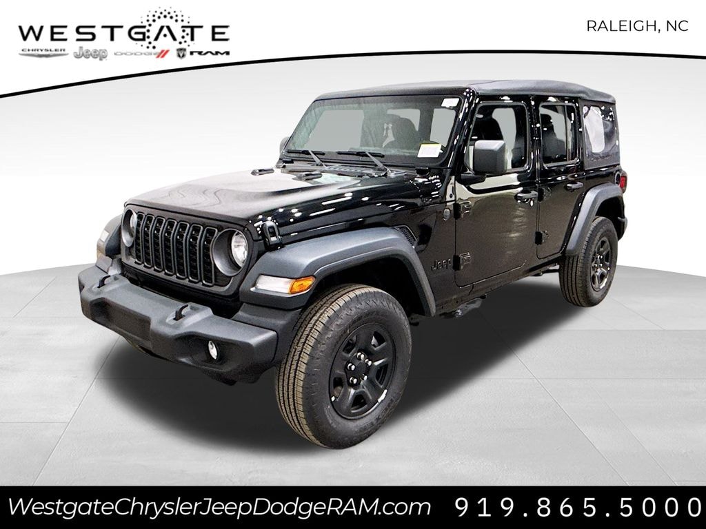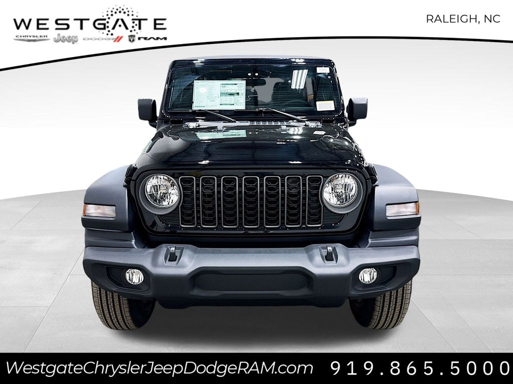 Black Clearcoat 2026 Jeep Wrangler Sport 4WD 8-Speed Automatic 2.0L I4 DOHC 3.45 Overall Top Gear Ratio, 4-Wheel Disc Brakes, 8 Speakers, ABS brakes, Air Conditioning, AM/FM radio: SiriusXM with 360L, Apple CarPlay/Android Auto, Aux Battery, Brake assist, Cloth Low-Back Bucket Seats, Compass, Delay-off headlights, Driver door bin, Driver vanity mirror, Dual front impact airbags, Dual front side impact airbags, Electronic Stability Control, Front anti-roll bar, Front Bucket Seats, Front Center Armrest w/Storage, Front fog lights, Front reading lights, Illuminated entry, Integrated roll-over protection, Low tire pressure warning, Non-Lock Fuel Cap w/o Discriminator, Normal Duty Suspension, Occupant sensing airbag, Outside temperature display, Overhead airbag, Panic alarm, ParkView Rear Back-Up Camera, Passenger door bin, Passenger vanity mirror, Power steering, Power windows, Quick Order Package 22B Sport, Radio data system, Radio: Uconnect 5 w/12.3" Display, Rear anti-roll bar, Rear reading lights, Remote keyless entry, Speed control, Split folding rear seat, Steering wheel mounted audio controls, Stop-Start Dual Battery System, Tachometer, Telescoping steering wheel, Tilt steering wheel, Traction control, Trip computer, Variably intermittent wipers, Wheels: 17" x 7.5" Black Steel Styled.