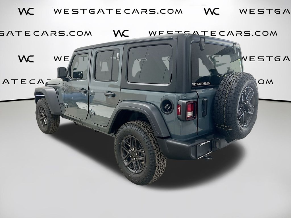 Anvil Clear Coat 2026 Jeep Wrangler Sport S 4WD 8-Speed Automatic 2.0L I4 DOHC 3.45 Overall Top Gear Ratio, 4-Wheel Disc Brakes, 8 Speakers, ABS brakes, Advanced Brake Assist, Air Conditioning, AM/FM radio: SiriusXM with 360L, Apple CarPlay/Android Auto, Automatic Headlamps, Aux Battery, Black 3-Piece Hard Top, Brake assist, Cloth Low-Back Bucket Seats, Compass, Corning Gorilla Glass, Deep Tint Sunscreen Windows, Delay-off headlights, Driver door bin, Driver vanity mirror, Dual front impact airbags, Dual front side impact airbags, Electronic Stability Control, Engine Oil Cooler, Enhanced Adaptive Cruise Control, Freedom Panel Storage Bag, Front anti-roll bar, Front Bucket Seats, Front Center Armrest w/Storage, Front fog lights, Front reading lights, Full Speed Forward Collision Warning Plus, Illuminated entry, Integrated roll-over protection, Low tire pressure warning, MOPAR All-Weather Floor Mats, Non-Lock Fuel Cap w/o Discriminator, Normal Duty Suspension, Occupant sensing airbag, Outside temperature display, Overhead airbag, Panic alarm, ParkView Rear Back-Up Camera, Passenger door bin, Passenger vanity mirror, Power Heated Mirrors, Power steering, Power windows, Premium Wrapped Steering Wheel, Quick Order Package 22S Sport S, Radio data system, Radio: Uconnect 5 w/12.3" Display, Rear anti-roll bar, Rear reading lights, Rear Window Defroster, Rear Window Wiper/Washer, Remote keyless entry, Security Alarm, Speed control, Split folding rear seat, Steering wheel mounted audio controls, Stop-Start Dual Battery System, Sun Visors w/Illuminated Vanity Mirrors, Tachometer, Telescoping steering wheel, Tilt steering wheel, Traction control, Trip computer, Variably intermittent wipers, Wheels: 17" x 7.5" Black Steel Styled, Wheels: 17" x 7.5" Gray.