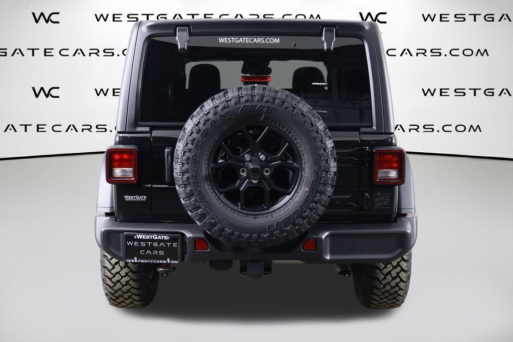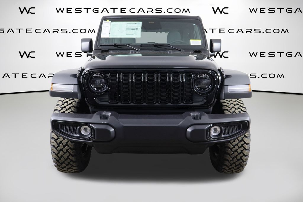 Black Clearcoat 2026 Jeep Wrangler Willys 4WD 8-Speed Automatic 2.0L I4 DOHC 12.3" Touchscreen Display, 4-Wheel Disc Brakes, 4-Wheel Drive Swing Gate Decal, 4G LTE Wi-Fi Hot Spot, 7 and 4 Pin Wiring Harness, 8 Speakers, ABS brakes, Advanced Brake Assist, Air Conditioning, AM/FM radio: SiriusXM with 360L, Apple CarPlay, Apple CarPlay/Android Auto, Automatic Headlamps, Aux Battery, Auxiliary Switches, Black 3-Piece Hard Top, Black Grille with Gloss Black Rings, Brake assist, Class II Receiver Hitch, Cloth Low-Back Bucket Seats, Compass, Connectivity - US/Canada, Conventional Differential Front Axle, Corning Gorilla Glass, Dana M210 Wide HD Tube Front Axle, Dana M220 Wide Rear Axle, Daytime Running Lamps LED Accents, Deep Tint Sunscreen Windows, Delay-off headlights, Driver door bin, Driver vanity mirror, Dual front impact airbags, Dual front side impact airbags, E-Locker Rear Axle, Electronic Stability Control, Enhanced Adaptive Cruise Control, For More Info, Call 800-643-2112, Freedom Panel Storage Bag, Front anti-roll bar, Front Bucket Seats, Front Center Armrest w/Storage, Front fog lights, Front LED Fog Lamps, Front reading lights, Full Speed Forward Collision Warning Plus, Google Android Auto, Illuminated entry, Injection Molded Black Rear Bumper, Integrated Center Stack Radio, Integrated roll-over protection, LED Premium Reflector Headlamps, Low tire pressure warning, Mold in Color Bumper with Gloss Black, Molded in Color Rubicon Highline Flare, MOPAR All-Weather Floor Mats, Myflexcare Service Plan, Non-Lock Fuel Cap Without Discriminator, Normal Duty Suspension, Occupant sensing airbag, Off-Road Plus Mode, Outside temperature display, Overhead airbag, Panic alarm, ParkView Rear Back-Up Camera, Passenger door bin, Passenger vanity mirror, Power Dome Dual Vented Hood, Power Heated Mirrors, Power steering, Power windows, Premium Wrapped Steering Wheel, Quick Order Package 22W Willys, Radio data system, Radio: Uconnect 5 with 12.3" Display, Rear anti-roll bar, Rear reading lights, Rear Window Defroster, Rear Window Wiper/Washer, Remote keyless entry, Security Alarm, SiriusXM Radio Service, SiriusXM with 360L, Speed control, Steel Power Dome Hood Package, Steering wheel mounted audio controls, Stop-Start Dual Battery System, Sun Visors with Illuminated Vanity Mirrors, Tachometer, Telescoping steering wheel, Tilt steering wheel, Traction control, Trip computer, Variably intermittent wipers, Wheels: 17" x 7.5" Black Steel Styled, Wheels: 17" x 7.5" Painted Black, Willy's Suspension, Willys Hood Decal.