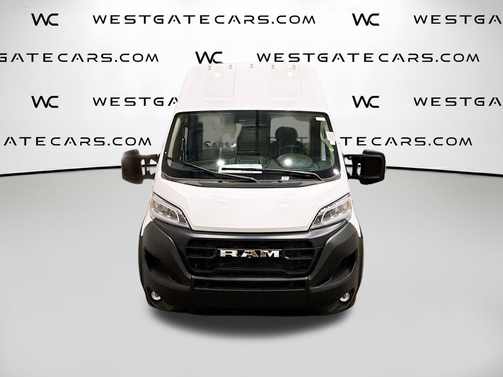 Bright White Clearcoat 2024 Ram ProMaster 3500 EV Super High Roof FWD 1-Speed Automatic Electric Motor 10.09 Axle Ratio, 16" x 6" Steel Wheels, 4 Speakers, 4-Wheel Disc Brakes, 70 mph Maximum Speed, ABS brakes, Adaptive Cruise Control w/Stop & Go, Air Conditioning, AM/FM radio: SiriusXM, Apple CarPlay/Android Auto, Auto High-beam Headlights, Auto-dimming Rear-View mirror, Blind Spot & Cross Path Detection, Bodyside moldings, Brake assist, Cloth Flat Driver's Seat, Delivery Van Package, Door Auto Lock-Unlock, Driver door bin, Driver's Seat Mounted Armrest, Dual front impact airbags, Electronic Stability Control, Emergency communication system, Front anti-roll bar, Front Bucket Seats, Front fog lights, Front reading lights, Front wheel independent suspension, Fully automatic headlights, Heated door mirrors, Heated front seats, Heated Steering Wheel, Heated Windshield, Heavy Duty Suspension, Illuminated entry, Intelligent Speed Assist (ISA), Lane Departure Warning Plus, Last Mile Delivery Upfit Kit, Leather steering wheel, Low tire pressure warning, Navigation System, Occupant sensing airbag, Outside temperature display, Overhead airbag, Overhead console, ParkSense Front/Rear Park Assist w/Stop, ParkView Rear Back-Up Camera, Passenger door bin, Passive Entry, Power door mirrors, Power steering, Power windows, Quick Order Package 24A, Radio Mute On Reverse, Radio: Uconnect 5 Nav w/10.1" Display, Rain sensing wipers, Rear anti-roll bar, Remote keyless entry, Steering wheel mounted audio controls, Surround View Camera System, Telescoping steering wheel, Traction control, Trip computer, Turn signal indicator mirrors, Variably intermittent wipers, White Noise Backup Alarm, Wireless Charging Pad.