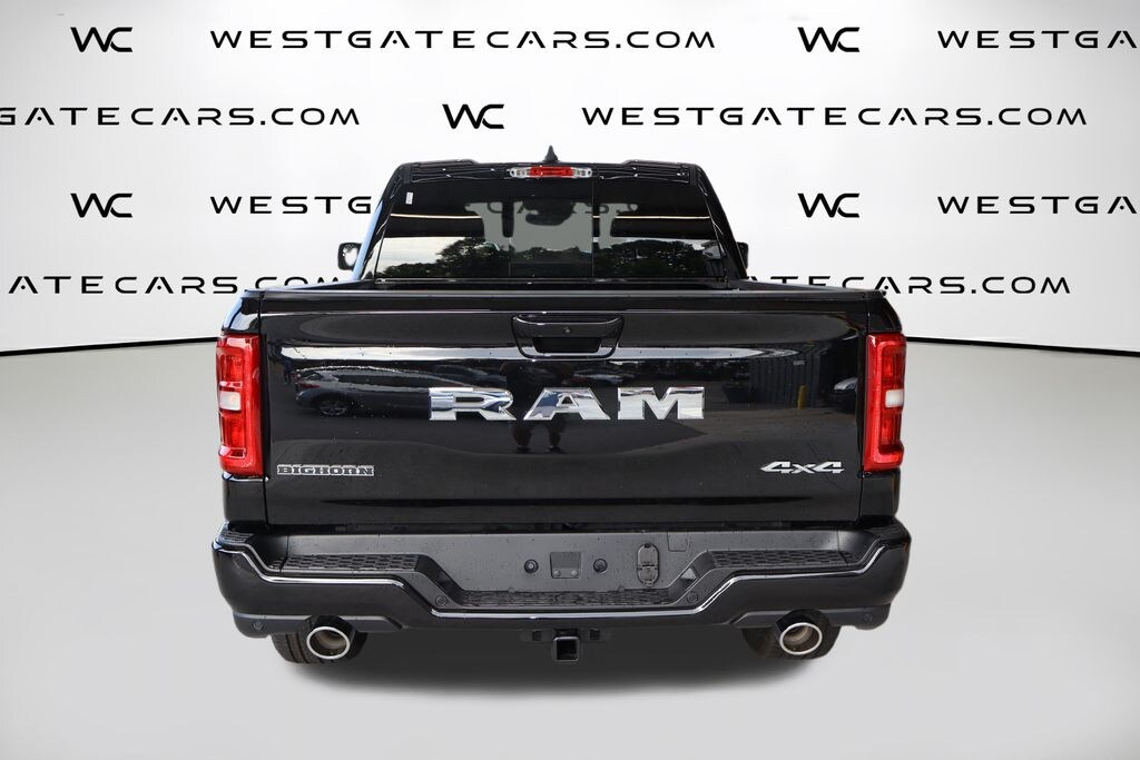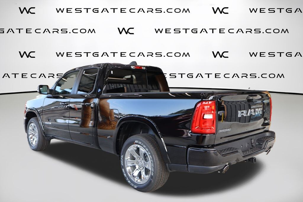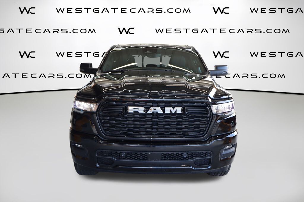 Diamond Black Crystal Pearlcoat 2025 Ram 1500 Big Horn/Lone Star 4WD 8-Speed Automatic 3.0L I6 115V Auxiliary Power Outlet, 26 Gallon Fuel Tank, 3 Rear Seat Head Restraints, 4 Way Front Headrests, 4-Wheel Disc Brakes, 400W Inverter, 4G LTE Wi-Fi Hot Spot, 6 Speakers, ABS brakes, Air Conditioning, Alloy wheels, AM/FM radio, Apple CarPlay, Apple CarPlay/Android Auto, Auto High-beam Headlights, Auto Power-Folding Mirrors, Auto-Dimming Exterior Driver Mirror, Auto-Dimming Rear-View Mirror, Big Horn Level 1 Equipment Group, Black Exterior Mirrors, Black Interior Accents, Black Premium Power Mirrors, Body Color Door Handles, Body Color Front Bumper, Body Color Rear Bumper w/Step Pads, Body Color Tailgate Handle, Brake assist, Bucket Seats, Bumpers: chrome, Chrome RAM Grille Badge, Cloth Bench Seat, Compass, Connectivity - US/Canada, Convex Wide-Angle Exterior Mirror Insert, Delay-off headlights, Deluxe Cloth Bucket Seats, Driver door bin, Dual front impact airbags, Dual front side impact airbags, Electronic Stability Control, Exterior Mirrors Courtesy Lamps, Exterior Mirrors w/Heating Element, Exterior Mirrors w/Supplemental Signals, Front anti-roll bar, Front Center Armrest w/Storage, Front fog lights, Front reading lights, Front Seat Back Map Pockets, Front wheel independent suspension, Full Length Floor Console, Fully automatic headlights, Glove Box Lamp, Google Android Auto, GPS Antenna Input, Grille Surround 1 Body Color Texture 1 Black, Heated door mirrors, Heated Front Seats, Heated Steering Wheel, Illuminated entry, Integrated Voice Command w/Bluetooth, Leather Wrapped Steering Wheel, Low tire pressure warning, Manual Adjust 4-Way Front Passenger Seat, Manual Folding Exterior Mirrors, Occupant sensing airbag, Outside temperature display, Overhead airbag, Overhead console, Panic alarm, ParkView Rear Back-Up Camera, Passenger door bin, Passenger vanity mirror, Power 2-Way Driver Lumbar Adjust, Power Adjust 8-Way Driver Seat, Power Adjustable Pedals, Power door mirrors, Power steering, Power windows, Quick Order Package 21Z Big Horn, Radio data system, Radio: Uconnect 5 w/8.4" Display, Rear 60/40 Folding Seat, Rear anti-roll bar, Rear Power Sliding Window, Rear seat center armrest, Rear step bumper, Rear Window Defroster, Remote keyless entry, Speed control, Split folding rear seat, Sport Appearance Package, Steering Wheel Mounted Audio Controls, Sun Visors w/Illuminated Vanity Mirrors, Supplier Part Tracking (J-1), Tachometer, Telescoping steering wheel, Tilt steering wheel, Traction control, Trip computer, Universal Garage Door Opener, USB Host Flip, Variably intermittent wipers, Voltmeter, Wheels: 18" x 8" Cast-Aluminum Painted, Wheels: 20" x 9" Aluminum Chrome Clad.