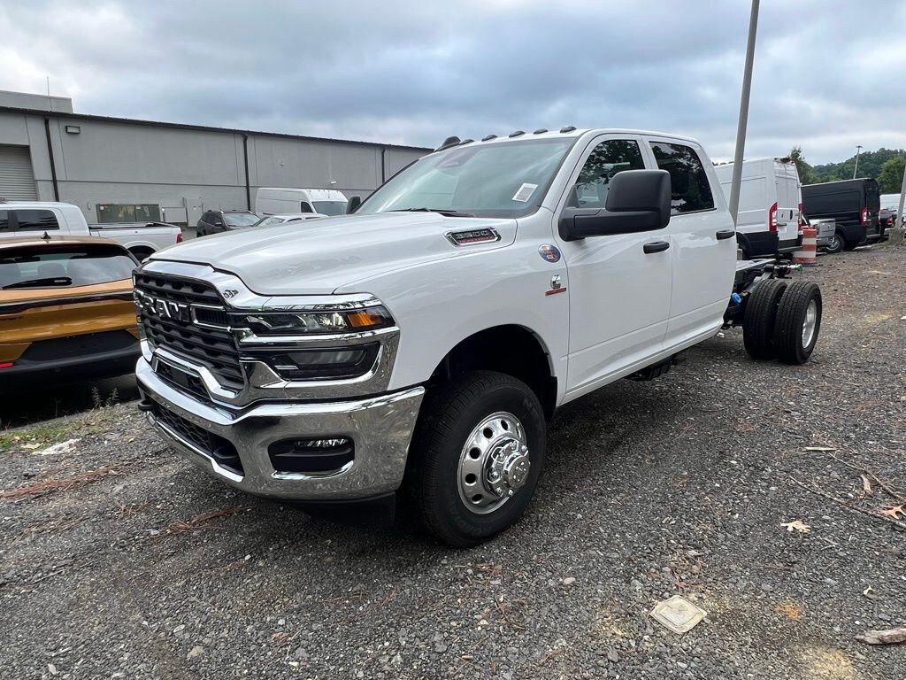 Bright White Clearcoat 2025 Ram 3500 Tradesman 4WD 8-Speed Automatic Cummins 6.7L I6 Turbodiesel 11.50" Dual Wheels Rear Axle, 2 Way Rear Headrest Seat, 4-Wheel Disc Brakes, 40/20/40 Split Bench Seat, 4G LTE Wi-Fi Hot Spot, 6 Speakers, 6000# Front Axle w/Hub Ext, ABS brakes, Air Conditioning, AM/FM radio: SiriusXM, Apple CarPlay, Apple CarPlay/Android Auto, Black Exterior Mirrors, Black Wheel Center Hub, Bright Front Bumper, Center Hub, Chrome Appearance Group, Chrome Grille Surround, Compass, Connectivity - US/Canada, Delay-off headlights, Driver door bin, Dual front impact airbags, Dual Rear Wheels, Electronic Stability Control, Emergency communication system: RAM Connect, For Details, Visit DriveUconnect.com, Front anti-roll bar, Front Armrest w/Cupholders, Front Center Armrest w/Storage, Front fog lights, Front reading lights, Fully automatic headlights, Global Telematics Box Module (TBM), Google Android Auto, GPS Antenna Input, HD Vinyl 40/20/40 Split Bench Seat, Illuminated entry, Integrated Voice Command w/Bluetooth, Manual Adjust 4-Way Driver Seat, Manual Adjust 4-Way Front Passenger Seat, Manual Folding Exterior Mirrors, Manual Telescoping Mirrors, Matte Black Mesh Grille w/Chrome, Occupant sensing airbag, Outside temperature display, Overhead console, Panic alarm, ParkView Rear Back-Up Camera, Passenger door bin, Passenger vanity mirror, Power steering, Power windows, Quick Order Package 25A Tradesman, Radio data system, Radio: Uconnect 5 w/8.4" Display, Rear anti-roll bar, Rear Folding Seat, Remote keyless entry, Remote USB Port - Charge Only, Speed control, Storage Tray, Tachometer, Temperature & Compass Gauge, Tilt steering wheel, Traction control, Variably intermittent wipers, Voltmeter, Wheels: 17" x 6.0" Polished Aluminum, Wheels: 18" x 8.0" Polished Aluminum, Wheels: 18" x 8.0" Steel Painted.
