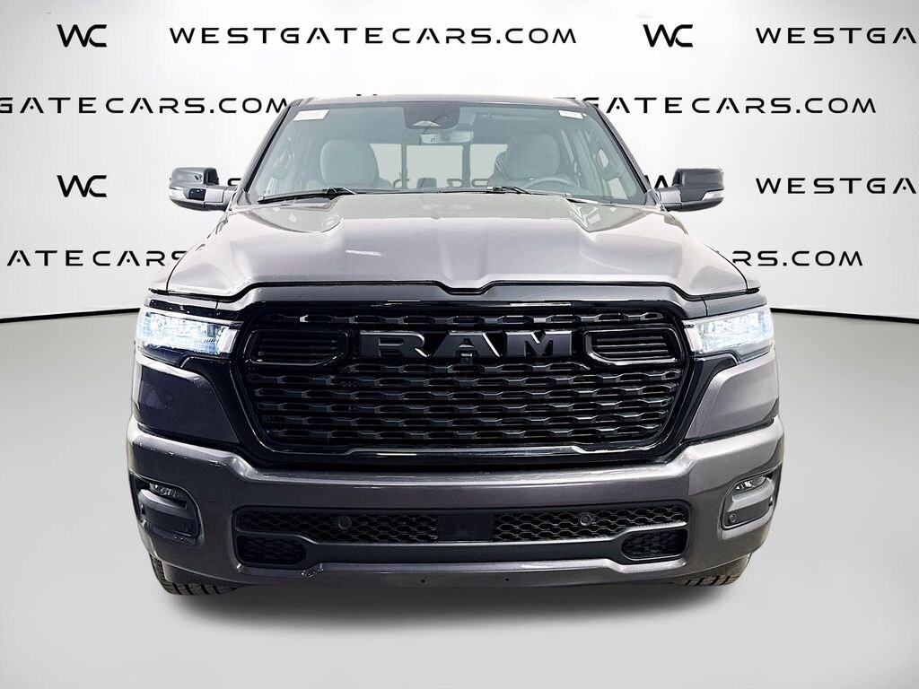 Granite Crystal Metallic Clearcoat 2026 Ram 1500 Big Horn/Lone Star 4WD 8-Speed Automatic 3.0L I6 115V Auxiliary Power Outlet, 115V Auxiliary Rear Power Outlet, 12" Touchscreen Display, 2nd Row In Floor Storage Bins, 3 Rear Seat Head Restraints, 4 Way Front Headrests, 4-Wheel Disc Brakes, 400W Inverter, 48V Belt Starter Generator, 4G LTE Wi-Fi Hot Spot, 6 Speakers, 9 Amplified Speakers w/Subwoofer, ABS brakes, Accent Color Door Handles, Accent Color Premium Power Mirrors, Accent Color Tailgate Handle, Air Conditioning, Air Conditioning ATC w/Dual Zone Control, Alloy wheels, AM/FM radio, Anti-Spin Differential Rear Axle, Apple CarPlay, Apple CarPlay/Android Auto, Auto High-beam Headlights, Auto Power-Folding Mirrors, Auto-Dimming Exterior Driver Mirror, Auto-Dimming Rear-View Mirror, Big Horn Level 2 Equipment Group, Black Exterior Mirrors, Black Exterior Truck Badging, Black Headlamp Bezels, Black Interior Accents, Black Painted Exterior Mirrors Caps, Black Premium Power Mirrors, Black Tail Lamp Bezels, Body Color Fender Flares, Body Color Front Bumper, Body Color Rear Bumper w/Step Pads, Brake assist, Bucket Seats, Bumpers: chrome, Center Console Parts Module, Cloth Bucket Seats, Cluster 7.0" TFT Color Display, Compass, Configurable Drive Mode, Connected Travel & Traffic Services, Connectivity - US/Canada, Convex Wide-Angle Exterior Mirror Insert, Delay-off headlights, Deluxe Cloth Bucket Seats, Disassociated Touchscreen Display, Driver door bin, Dual Exhaust w/Black Tips, Dual front impact airbags, Dual front side impact airbags, Electronic Stability Control, Exterior Mirrors Courtesy Lamps, Exterior Mirrors w/Heating Element, Exterior Mirrors w/Supplemental Signals, Front anti-roll bar, Front Bucket Seats, Front Center Armrest w/Storage, Front fog lights, Front reading lights, Front Seat Back Map Pockets, Front wheel independent suspension, Full Length Floor Console, Fully automatic headlights, Global Telematics Box Module (TBM), Glove Box Lamp, Google Android Auto, GPS Antenna Input, GPS Navigation, Grille Black Surround Black Mesh, HD Radio, Heated door mirrors, Heated Front Seats, Heated Steering Wheel, Illuminated entry, Integrated Center Stack Radio, Integrated Voice Command w/Bluetooth, Leather Wrapped Steering Wheel, LED Dome Lamp w/On/Off Switch, LED Footwell Lighting, Low tire pressure warning, Manual Adjust 4-Way Driver Seat, Manual Adjust 4-Way Front Passenger Seat, Manual Folding Exterior Mirrors, Media Hub w/2 Charge Only USBs, Night Edition, Occupant sensing airbag, Outside temperature display, Overhead airbag, Overhead console, Overhead LED Lamps, Panic alarm, ParkView Rear Back-Up Camera, Passenger door bin, Passenger vanity mirror, Power 2-Way Driver Lumbar Adjust, Power Adjust 8-Way Driver Seat, Power Adjustable Pedals, Power door mirrors, Power steering, Power windows, Premium Overhead Console, Quick Order Package 21Z Big Horn, Radio data system, Radio: Uconnect 5 Nav w/12.0" Display, Radio: Uconnect 5 W w/8.4" Display, RAM Grille Badge - Black, RAM Grille Badge - Chrome, Rear 60/40 Folding Seat, Rear anti-roll bar, Rear Center Armrest, Rear Power Sliding Window, Rear step bumper, Rear Wheelhouse Liners, Rear Window Defroster, Remote keyless entry, Remote Tailgate Release, Security Alarm, SiriusXM Radio Service, SiriusXM w/360L, Speed control, Steering Wheel Mounted Audio Controls, Sun Visors w/Illuminated Vanity Mirrors, Supplier Part Tracking (J-1), Tachometer, Telescoping steering wheel, Tilt steering wheel, Traction control, Trip computer, Universal Garage Door Opener, USB Host Flip, Variably intermittent wipers, Voltmeter, Wheels: 18" x 8" Cast-Aluminum Painted, Wheels: 20" x 9.0" Aluminum Painted Clad, Wheels: 20" x 9" Aluminum Chrome Clad (WRK).