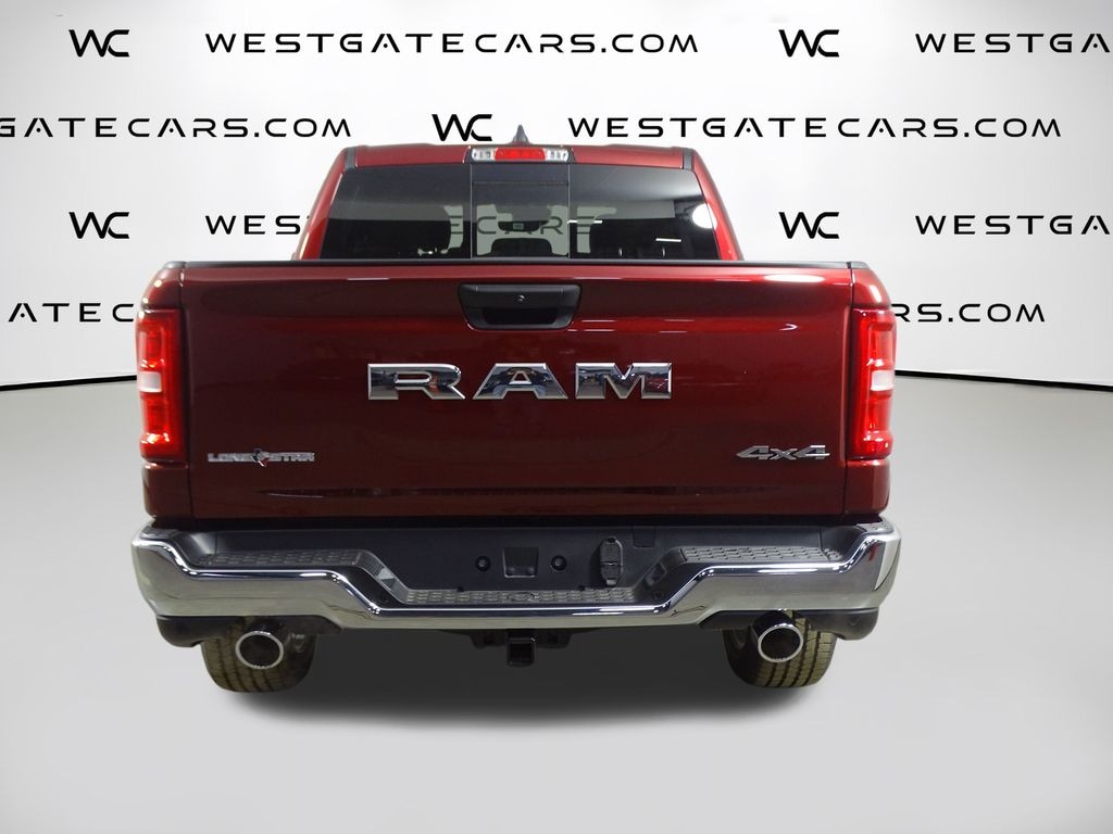 Delmonico Red Pearlcoat 2026 Ram 1500 Big Horn/Lone Star 4WD 8-Speed Automatic 3.0L I6 115V Auxiliary Power Outlet, 2nd Row In Floor Storage Bins, 3 Rear Seat Head Restraints, 4 Way Front Headrests, 4-Wheel Disc Brakes, 400W Inverter, 48V Belt Starter Generator, 4G LTE Wi-Fi Hot Spot, 6 Speakers, ABS brakes, Air Conditioning, Alloy wheels, AM/FM radio, Apple CarPlay, Apple CarPlay/Android Auto, Auto High-beam Headlights, Auto Power-Folding Mirrors, Auto-Dimming Exterior Driver Mirror, Auto-Dimming Rear-View Mirror, Big Horn Level 1 Equipment Group, Black Exterior Mirrors, Black Premium Power Mirrors, Body Color Fender Flares, Brake assist, Bucket Seats, Bumpers: chrome, Center Console Parts Module, Cloth Bucket Seats, Compass, Connectivity - US/Canada, Convex Wide-Angle Exterior Mirror Insert, Delay-off headlights, Deluxe Cloth Bucket Seats, Driver door bin, Dual front impact airbags, Dual front side impact airbags, Electronic Stability Control, Exterior Mirrors Courtesy Lamps, Exterior Mirrors w/Heating Element, Exterior Mirrors w/Supplemental Signals, Front anti-roll bar, Front Bucket Seats, Front Center Armrest w/Storage, Front fog lights, Front reading lights, Front Seat Back Map Pockets, Front wheel independent suspension, Full Length Floor Console, Fully automatic headlights, Global Telematics Box Module (TBM), Glove Box Lamp, Google Android Auto, GPS Antenna Input, Heated door mirrors, Heated Front Seats, Heated Steering Wheel, Illuminated entry, Integrated Center Stack Radio, Integrated Voice Command w/Bluetooth, Leather Wrapped Steering Wheel, Lone Star Badge, Low tire pressure warning, Manual Adjust 4-Way Driver Seat, Manual Adjust 4-Way Front Passenger Seat, Manual Folding Exterior Mirrors, Occupant sensing airbag, Outside temperature display, Overhead airbag, Overhead console, Panic alarm, ParkView Rear Back-Up Camera, Passenger door bin, Passenger vanity mirror, Power 2-Way Driver Lumbar Adjust, Power Adjust 8-Way Driver Seat, Power Adjustable Pedals, Power door mirrors, Power steering, Power windows, Quick Order Package 21R Lone Star (Regional), Radio data system, Radio: Uconnect 5 W w/8.4" Display, RAM Grille Badge - Chrome, Rear 60/40 Folding Seat, Rear anti-roll bar, Rear Center Armrest, Rear Dome w/On/Off Switch Lamp, Rear Power Sliding Window, Rear step bumper, Rear Wheelhouse Liners, Rear Window Defroster, Remote keyless entry, SiriusXM Radio Service, SiriusXM Satellite Radio, Speed control, Steering Wheel Mounted Audio Controls, Sun Visors w/Illuminated Vanity Mirrors, Supplier Part Tracking (J-1), Tachometer, Telescoping steering wheel, Tilt steering wheel, Traction control, Trip computer, Universal Garage Door Opener, USB Host Flip, Variably intermittent wipers, Voltmeter, Wheels: 18" x 8" Cast-Aluminum Painted, Wheels: 20" x 9" Aluminum Chrome Clad.