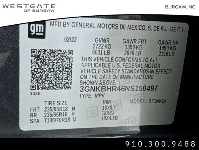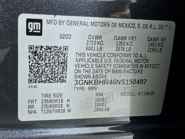 • VIN : 3GNKBHR46NS150497