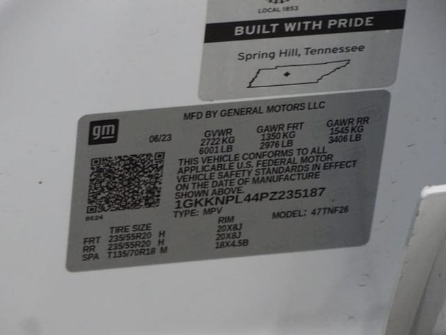 • VIN : 1GKKNPL44PZ235187