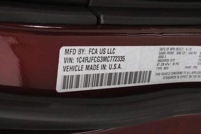 • VIN : 1C4RJFCG3MC772335