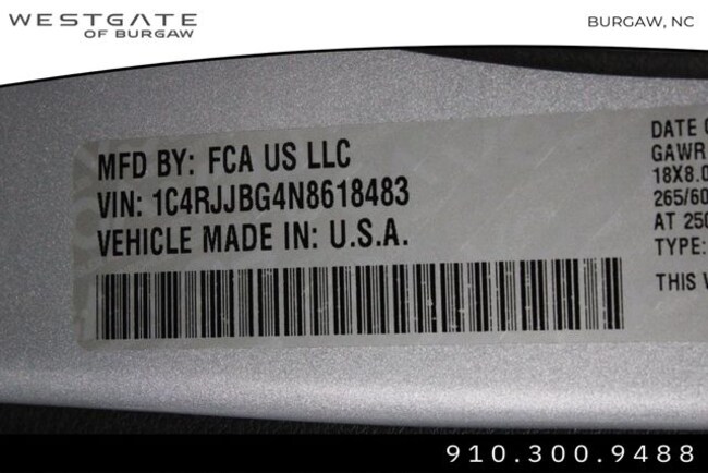 • VIN : 1C4RJJBG4N8618483