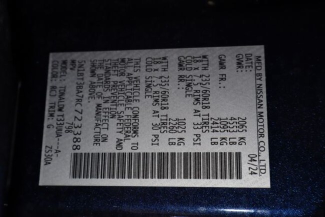 • VIN : 5N1BT3BA7RC723388