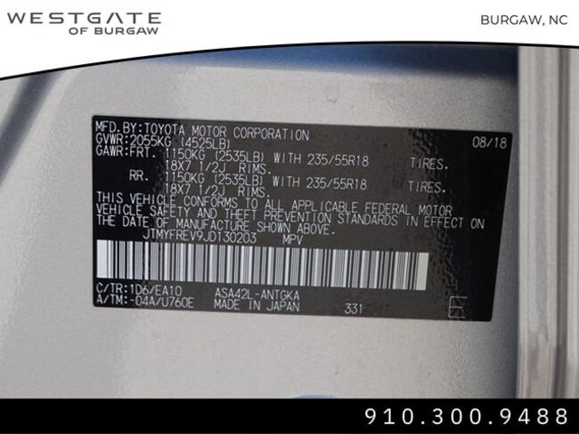 • VIN : JTMYFREV9JD130203
