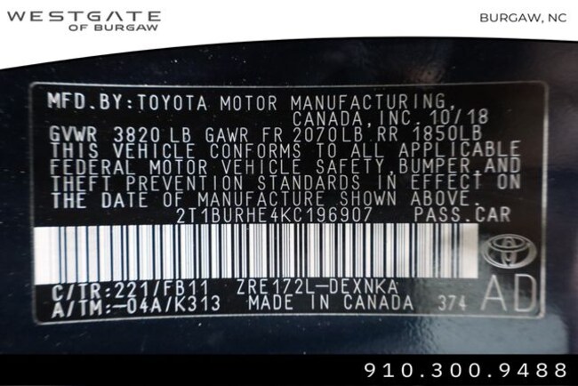 • VIN : 2T1BURHE4KC196907