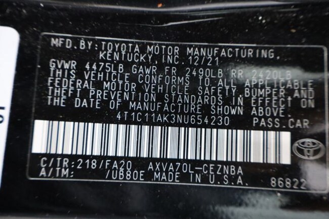 • VIN : 4T1C11AK3NU654230