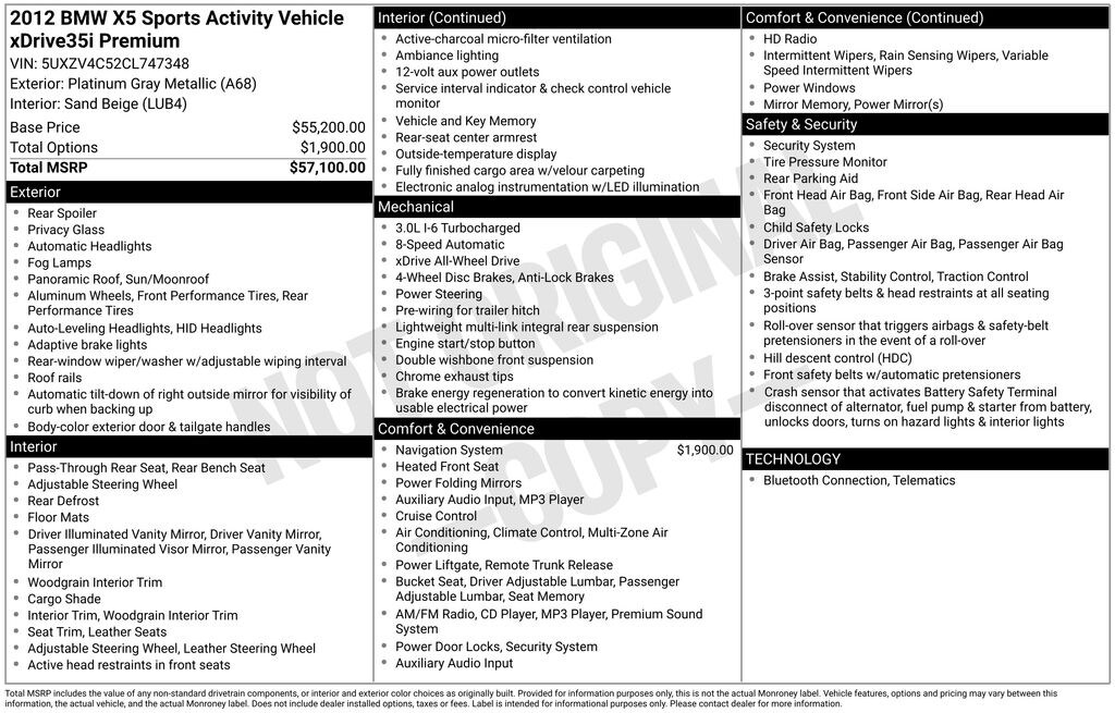 2012 BMW X5 xDrive35i Premium AWD