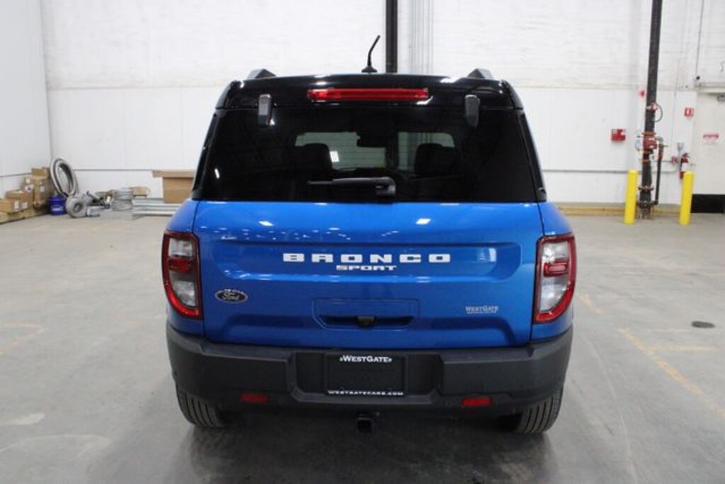 Velocity Blue Metallic 2022 Ford Bronco Sport Outer Banks 4WD 8-Speed Automatic 1.5L EcoBoost 3.80 Axle Ratio, 4-Wheel Disc Brakes, 6 Speakers, ABS brakes, Air Conditioning, Alloy wheels, AM/FM radio: SiriusXM, AM/FM Stereo, Auto High-beam Headlights, Auto-dimming Rear-View mirror, Automatic temperature control, Brake assist, Class II Trailer Tow Package w/Trailer Sway Control, Compass, Delay-off headlights, Driver door bin, Driver vanity mirror, Dual front impact airbags, Dual front side impact airbags, Electronic Stability Control, Emergency communication system: SYNC 3 911 Assist, Equipment Group 300A, Evasive Steering Assist, Ford Co-Pilot360 Assist+, Four wheel independent suspension, Front anti-roll bar, Front Bucket Seats, Front Center Armrest, Front dual zone A/C, Front fog lights, Front reading lights, Fully automatic headlights, Heated door mirrors, Heated front seats, Heated steering wheel, Illuminated entry, Intelligent Adaptive Cruise Control w/Stop & Go, Knee airbag, Leather Trimmed Heated Sport Contour Bucket Seats, Low tire pressure warning, Occupant sensing airbag, Outside temperature display, Overhead airbag, Overhead console, Panic alarm, Passenger door bin, Passenger vanity mirror, Power door mirrors, Power driver seat, Power passenger seat, Power steering, Power windows, Radio data system, Rain sensing wipers, Rear anti-roll bar, Rear Parking Sensors, Rear reading lights, Rear seat center armrest, Rear window defroster, Rear window wiper, Remote keyless entry, Roof rack: rails only, Security system, SiriusXM Radio, Speed control, Speed-sensing steering, Speed-Sensitive Wipers, Split folding rear seat, Steering wheel mounted audio controls, SYNC 3 Communications & Entertainment System, SYNC 3/Apple CarPlay/Android Auto, Tachometer, Telescoping steering wheel, Tilt steering wheel, Traction control, Trip computer, Variably intermittent wipers, Voice-Activated Touchscreen Navigation System, Wheels: 18" Ebony Black-Painted Aluminum.