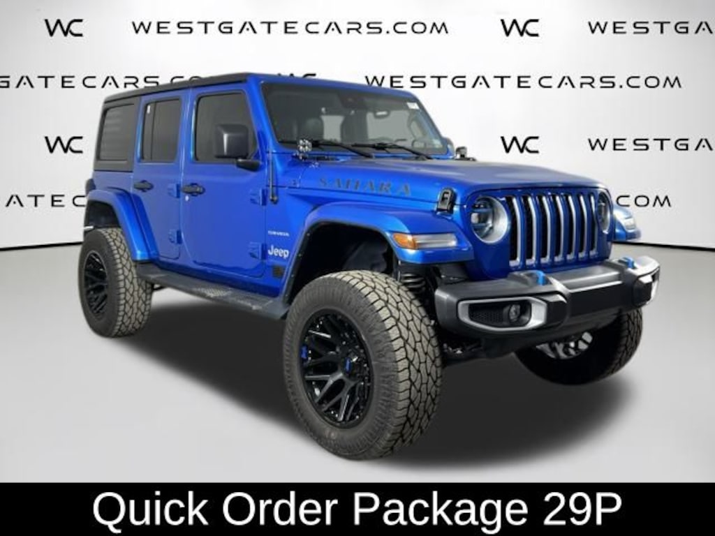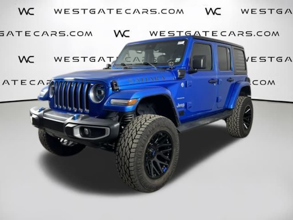 This 2022 Jeep Wrangler Unlimited Sahara 4xe in eye-catching Blue is an exceptional find. Powered by a 2.0L I4 DOHC engine and equipped with 4-wheel drive, this Wrangler delivers the off-road capability and driving dynamics that have made it an icon. But it also offers the added efficiency of a plug-in hybrid powertrain, providing up to 21 miles of all-electric range for your daily commute or weekend adventures.