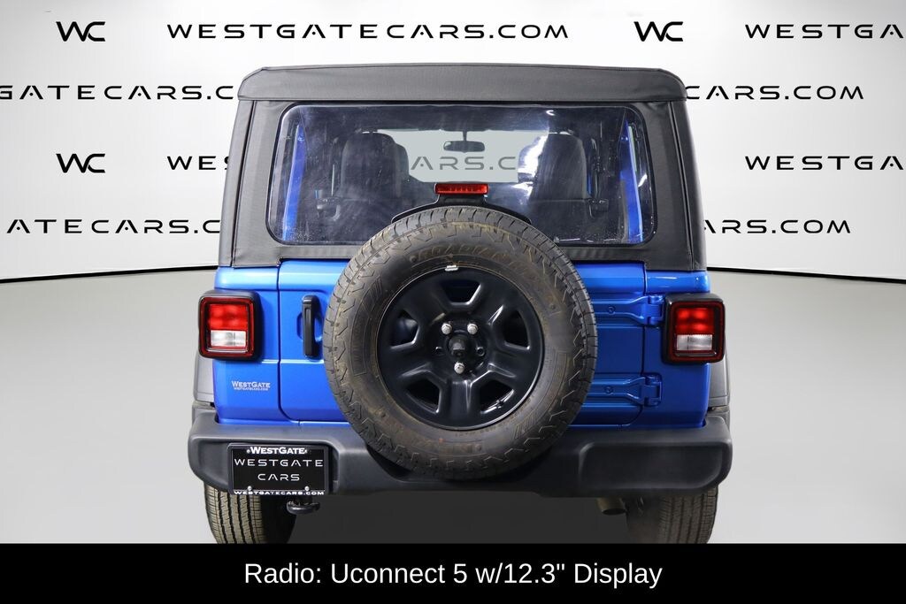 The Hydro Blue Pearlcoat exterior gives this Wrangler a bold and distinctive look, while the interior features comfortable cloth seats and a host of convenient features. The Uconnect 5 infotainment system with a large 12.3-inch display keeps you connected and entertained, with Apple CarPlay and Android Auto integration for seamless smartphone integration. The ParkView Rear Back-Up Camera makes it easy to maneuver in tight spaces, and the 8-speaker audio system provides high-quality sound.