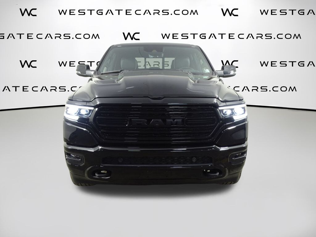 10 Speakers, 4 Way Front Headrests, 4-Wheel Disc Brakes, 48V Belt Starter Generator, ABS brakes, Accent Color Door Handles, Accent Color Premium Power Mirrors, Active Noise Control System, Adaptive Cruise Control w/Stop & Go, Adjustable pedals, Air Conditioning, Alloy wheels, AM/FM radio: SiriusXM with 360L, Anti-Spin Differential Rear Axle, Apple CarPlay/Android Auto, Audio memory, Auto High-beam Headlights, Auto-dimming door mirrors, Auto-Dimming Exterior Driver Mirror, Auto-dimming Rear-View mirror, Auto-leveling suspension, Automatic temperature control, Black Day Light Opening Moldings, Black Exterior Truck Badging, Black Grille Surround Texture 7 Black, Black Headlamp Bezels, Black Painted Exterior Mirrors Caps, Body Color Front Bumper, Body Color Rear Bumper w/Step Pads, Bodyside moldings, Brake assist, Bucket Seats, Bumpers: chrome, Chrome Exterior Mirrors, Compass, Convex Wide-Angle Exterior Mirror Insert, Delay-off headlights, Digital Rearview Mirror, Dome Dual LED Reading Lamp, Driver door bin, Driver Seat Memory, Driver vanity mirror, Dual Exhaust w/Black Tips, Dual front impact airbags, Dual front side impact airbags, Dual Rear Exhaust w/Bright Tips, Dual-Pane Panoramic Sunroof, Electronic Stability Control, Exterior Mirrors Courtesy Lamps, Exterior Mirrors w/Heating Element, Exterior Mirrors w/Memory, Exterior Mirrors w/Supplemental Signals, Front anti-roll bar, Front Bucket Seats, Front Center Armrest w/Storage, Front dual zone A/C, Front fog lights, Front reading lights, Front Seat Back Map Pockets, Front wheel independent suspension, Full Length Premium Floor Console, Fully automatic headlights, Garage door transmitter, Genuine wood console insert, Genuine wood dashboard insert, Genuine wood door panel insert, harman/kardon 19 Speaker Premium Sound, Heads-Up Display, Heated door mirrors, Heated Front Seats, Heated front seats, Heated rear seats, Heated Second Row Seats, Heated Steering Wheel, Heated steering wheel, Heavy-Duty Engine Cooling, HEMI Badge, Illuminated entry, Lane Keep Assist, Leather steering wheel, LED CHMSL Lamp, LED Dome/Reading Lamp, Limited Level 1 Equipment Group, Low tire pressure warning, Memory seat, MOPAR Spray In Bedliner, Navigation System, Night Edition, Occupant sensing airbag, Outside temperature display, Overhead airbag, Overhead console, Panic alarm, Parallel & Perp Park Assist w/Stop, ParkSense Front/Rear Park Assist w/Stop, ParkView Rear Back-Up Camera, Passenger door bin, Passenger vanity mirror, Passive Tuned Mass Damper, Pedal memory, Pedestrian Emergency Braking, Pick-Up Box Lighting, Power 4-Way Driver Lumbar Adjust, Power 4-Way Passenger Lumbar Adjust, Power 8-Way Driver & Passenger Seats, Power door mirrors, Power driver seat, Power passenger seat, Power Running Boards, Power steering, Power windows, Power-Folding Mirrors, Premium Leather Trimmed Bucket Seats, Quick Order Package 27M Limited, Radio data system, Radio: Uconnect 5 Nav w/12.0" Display, Rain sensing wipers, RAM Grille Badge - Black, Rear 60/40 Folding Split Recline Seat, Rear anti-roll bar, Rear seat center armrest, Rear step bumper, Rear window defroster, Remote keyless entry, Security system, Speed control, Split folding rear seat, Sport Performance Hood, Steering wheel mounted audio controls, Surround View Camera System, Tachometer, Telescoping steering wheel, Tilt steering wheel, Tow Hooks, Traction control, Trailer Brake Control, Trailer Light Check, Trailer Reverse Steering Control, Trailer Tire Pressure Monitoring System, Trailer Tow Group, Tri-Fold Tonneau Cover, Trip computer, Turn signal indicator mirrors, Variably intermittent wipers, Ventilated Front Seats,