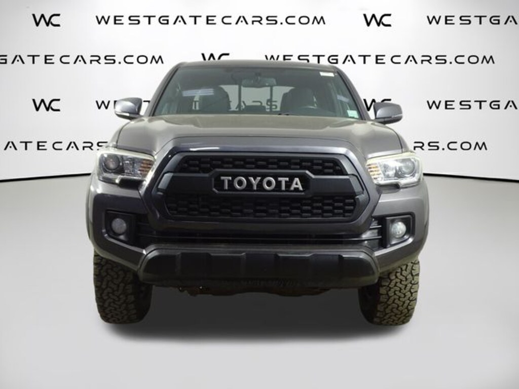 This Tacoma's impressive list of features doesn't stop there. It also boasts a host of advanced safety technologies, including ABS brakes, anti-whiplash front head restraints, dual front impact airbags, and an electronic stability control system. The exterior is finished in a sleek gray color, complemented by 17-inch machined alloy wheels and a rear step bumper for easy access.